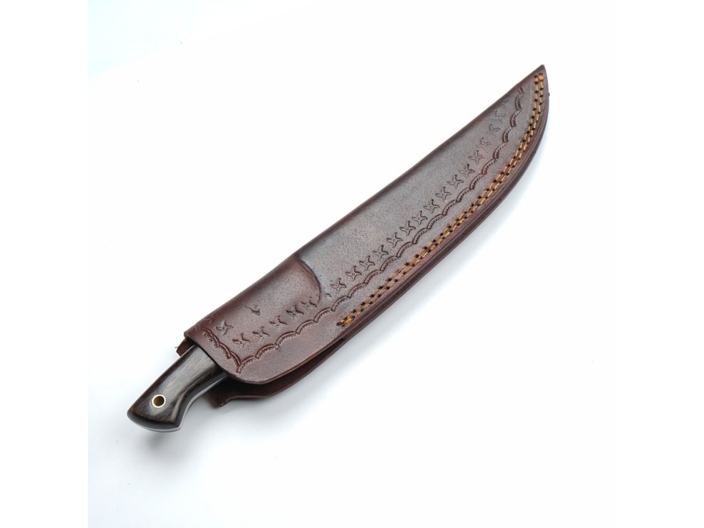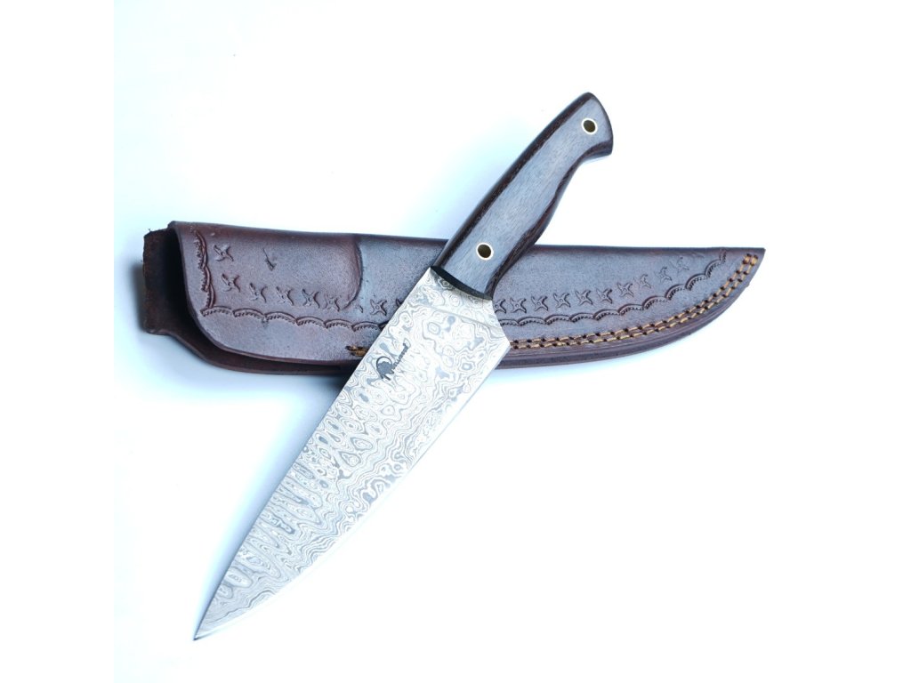 Tento nádherný 325 mm dlouhý ručně vyráběný kuchařský nůž z damascénské oceli oživí vaše smysly. Svojí váhou je tento nůž šelma, která snadno rozseká zeleninu a s lehkostí rozřeže maso. Vysoký obsah uhlíku v oceli 1095 dává tomuto noži extrémně ostré a trvanlivé ostří, činíc z něj ideální volbu pro kuchaře po celém světě. Uhlíkové oceli je mnohem snazší ostřit než nerezové nože. Postupem času váš nůž "Capo Damascato" přijme krásnou patinu a stane se jedinečným uměleckým dílem, které je zcela vaše.