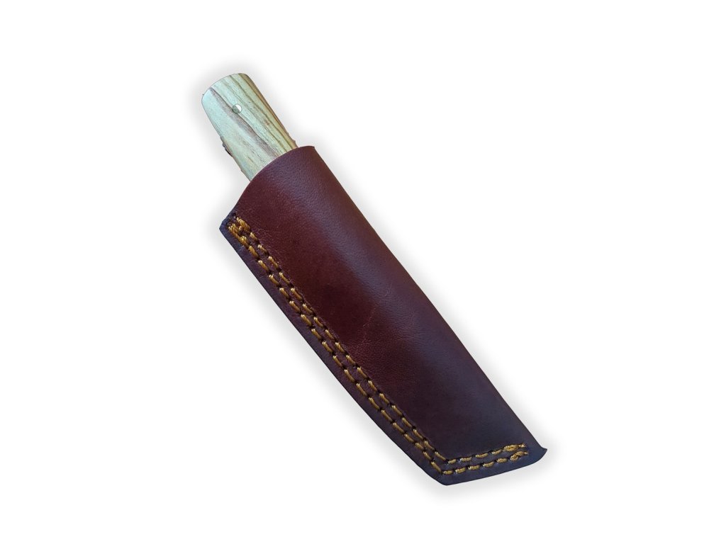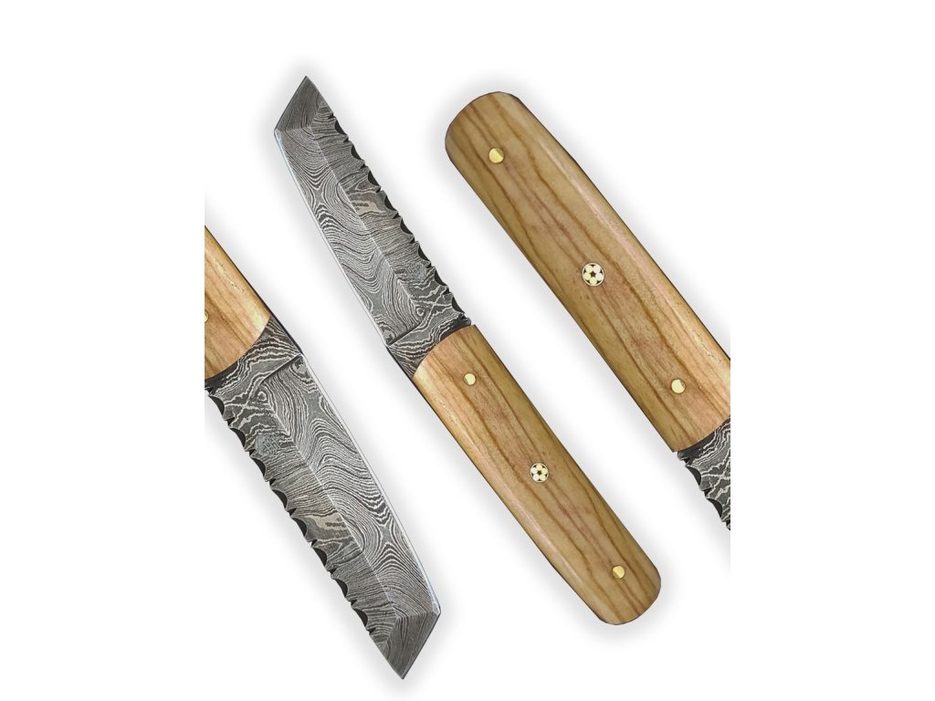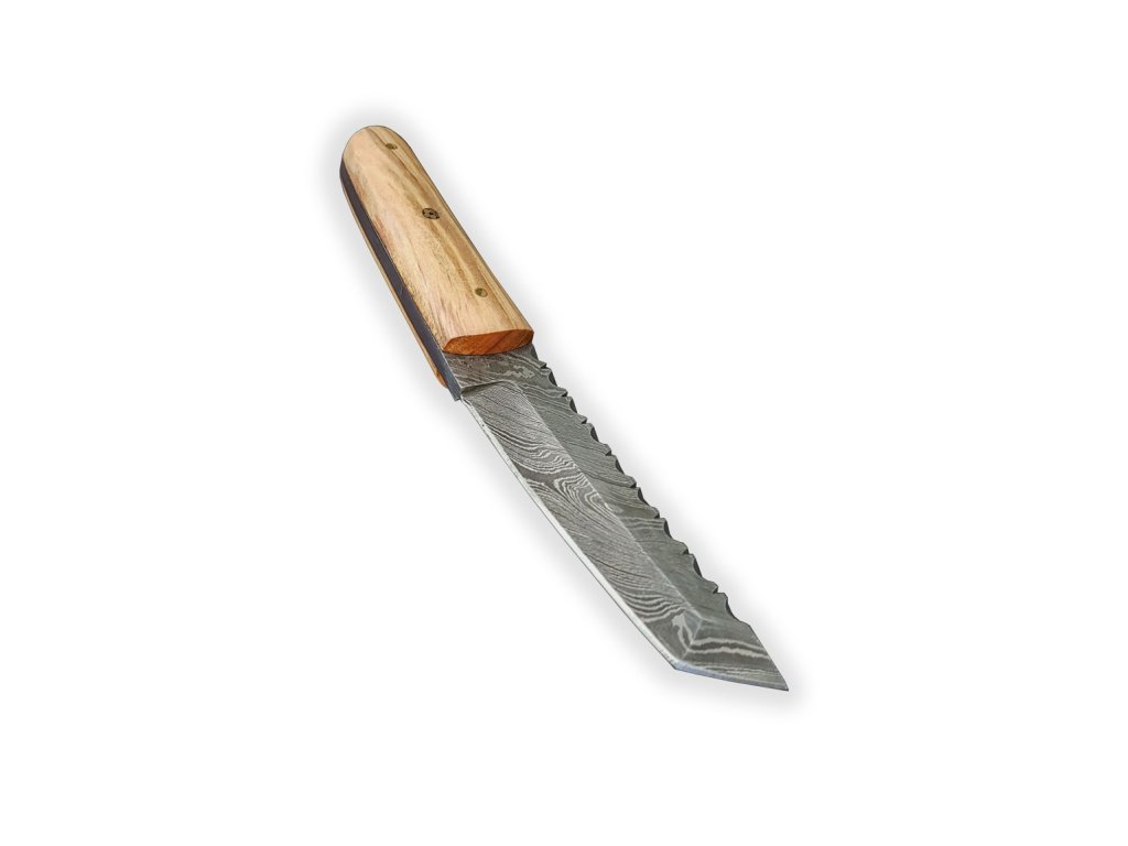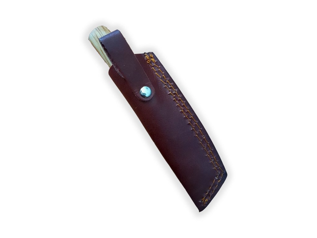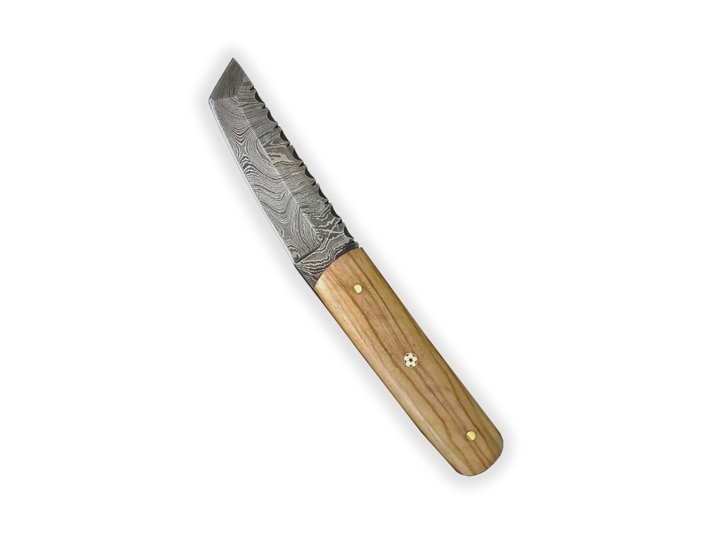 Exklusivní malý lovecký nůž s pevnou čepelí z dascénské oceli a střenkou z olivového dřeva. Nůž je vyroben z 352 ručně překládaných vrstev ocelí 1095 a 15n20. Vysoký obsah uhlíku 1095 dává tomuto noži ostré a trvanlivé ostří. Uhlíkové oceli je mnohem snazší ostřit než nerezové nože. Postupem času Váš nůž přijme krásnou patinu a opravdu se stane jedinečným uměleckým dílem, které je zcela Vaše.