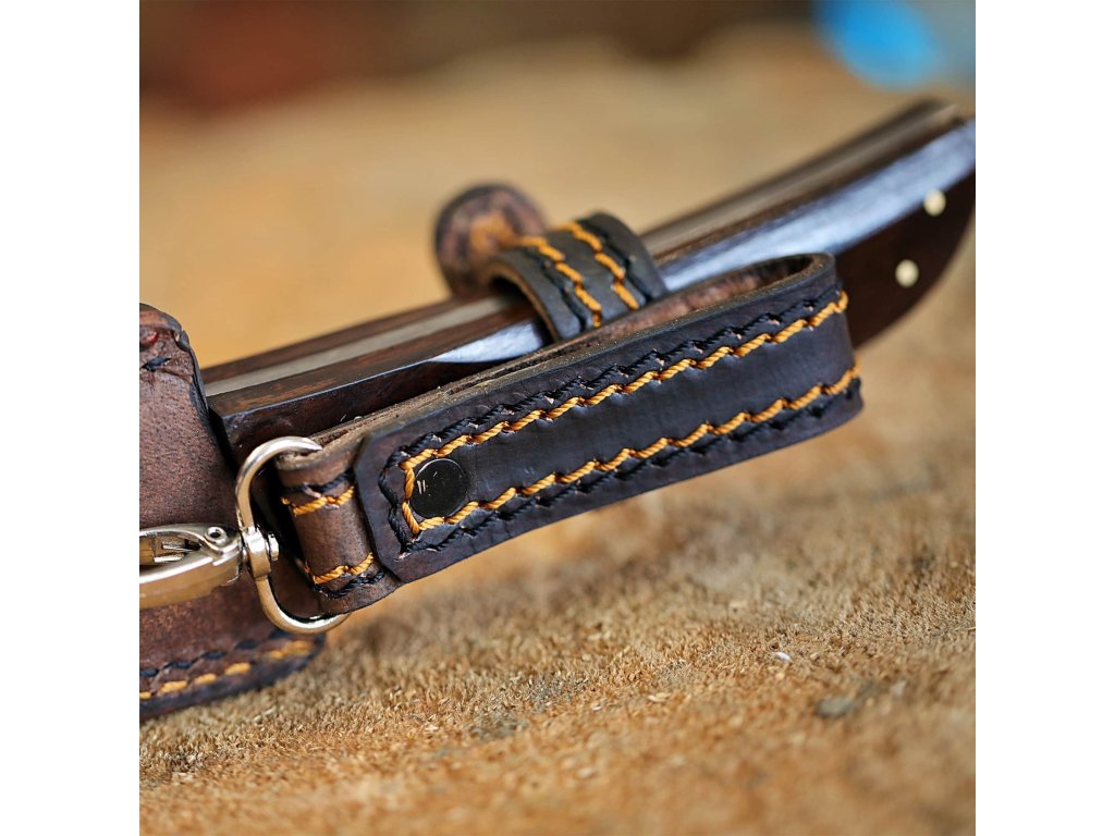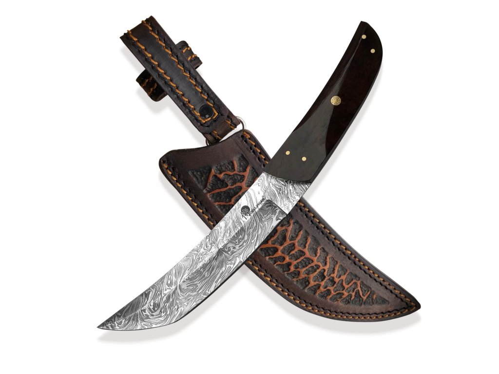 Exklusivní lovecký nůž s pevnou čepelí z dascénské oceli a střenkou z exotického dřeva Snake Wood a Ebony Wood. Nůž je vyroben z 352 ručně překládaných vrstev ocelí 1095 a 15n20. Vysoký obsah uhlíku 1095 dává tomuto noži extrémně ostré a trvanlivé ostří. Uhlíkové oceli je mnohem snazší ostřit než nerezové nože. Postupem času Váš nůž přijme krásnou patinu a opravdu se stane jedinečným uměleckým dílem, které je zcela Vaše.