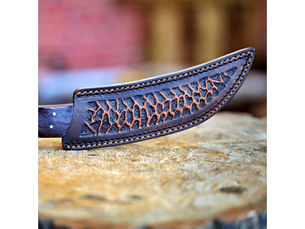 Upozornění: Každý nůž je vyroben z přírodních materiálů. Každý kus z damascénské oceli je originální a nenapodobitelný, proto Váš nůž nemusí vypadat přesně tak jak na fotografii. Nůž, který obdržíte, bude stejně kvalitní a detailně opracovaný, ale může se mírně lišit.