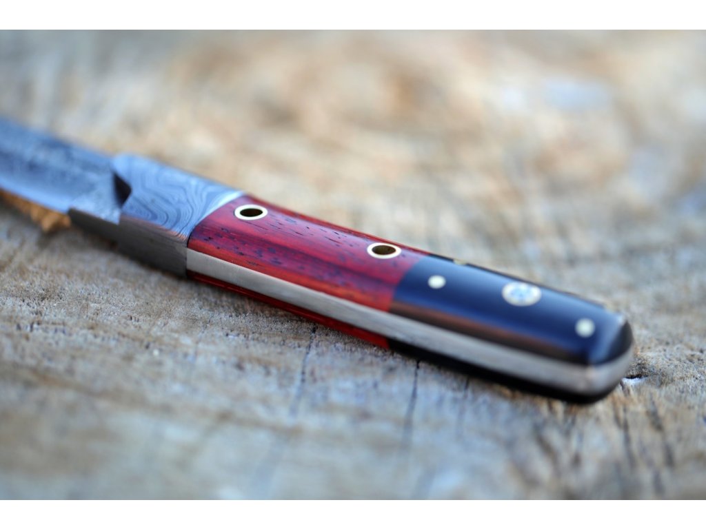 - Každý nůž je ručně vyroben z přírodních materiálů, jako je damaská ocel a dřeva Padauk a Ebony. Každý kus je originál a může se mírně lišit ve vzoru a barvě.