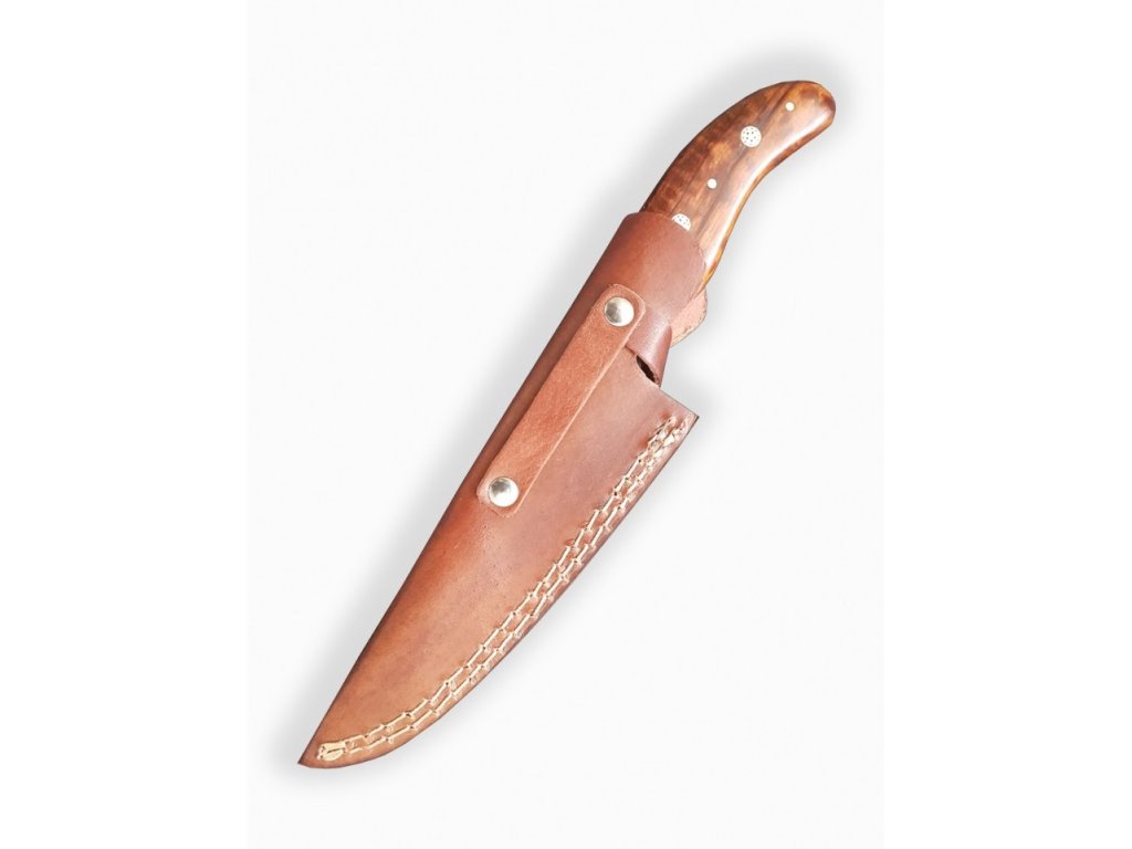 Upozornění: Každý nůž je vyroben z přírodních materiálů. Každý kus z damascénské oceli je originální a nenapodobitelný, proto Váš nůž nemusí vypadat přesně tak jak na fotografii. Nůž, který obdržíte, bude stejně kvalitní a detailně opracovaný, ale může se mírně lišit.