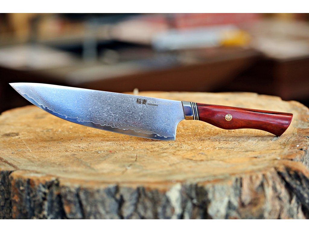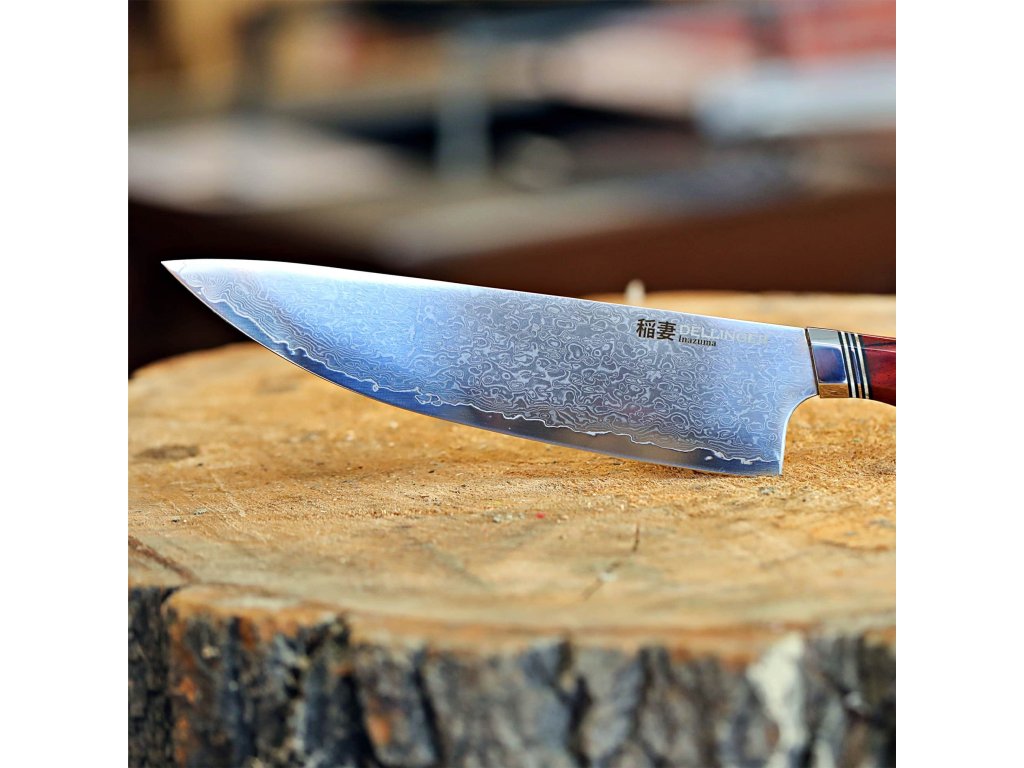 ✅ japonský nůž GYUTO / Chef 210 mm Dellinger Inazuma z damascénské oceli ( damascus steel ), nikdy neumývejte v myčce na nádobí. Pro zachování ostrosti nůž ručně omyjte a ihned osušte.