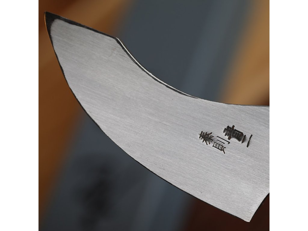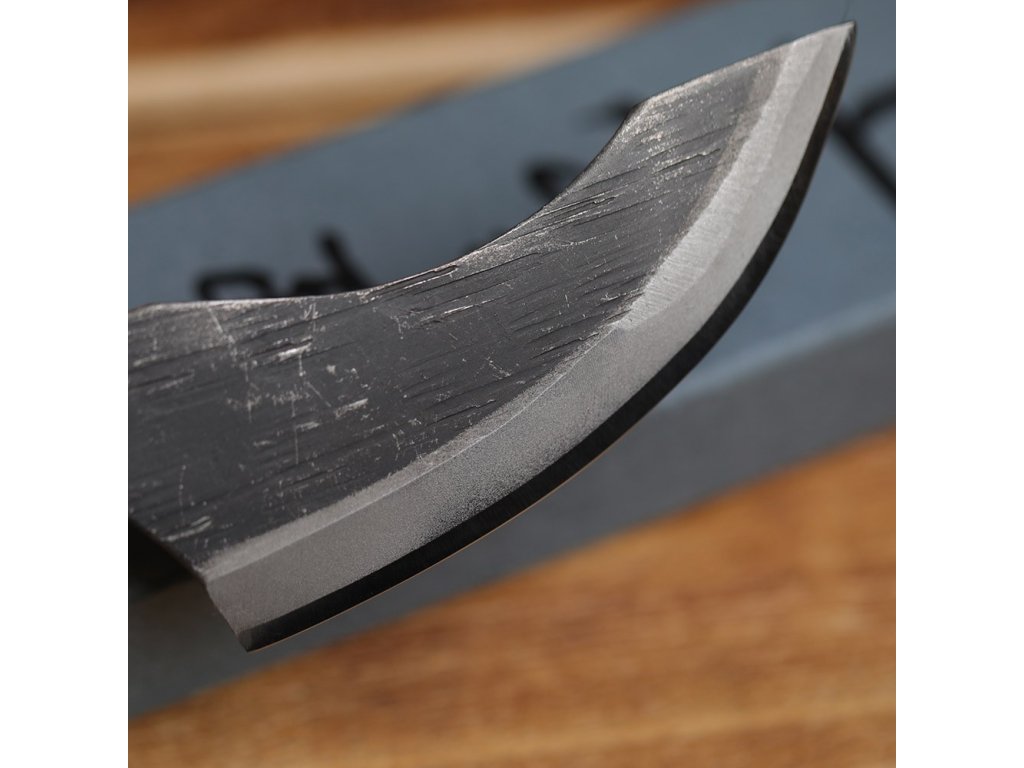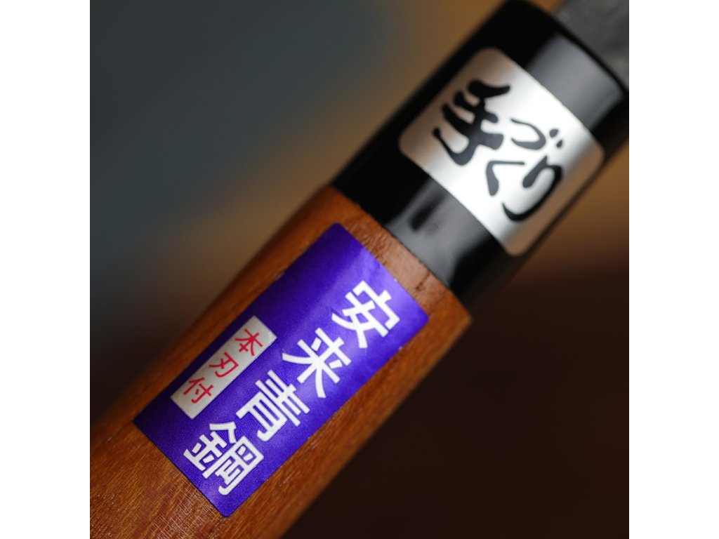Čepel je vyrobena z kvalitní japonské uhlíkové oceli Blue Steel #2, která dosahuje tvrdosti 60–61 HRC. Tato ocel umožňuje opakované broušení do extrémně jemného ostří a zajišťuje dlouhotrvající řezný výkon. Nůž je určen pro zkušenější kuchaře, kteří ocení jeho ostrost a citlivé ovládání při práci v detailu.