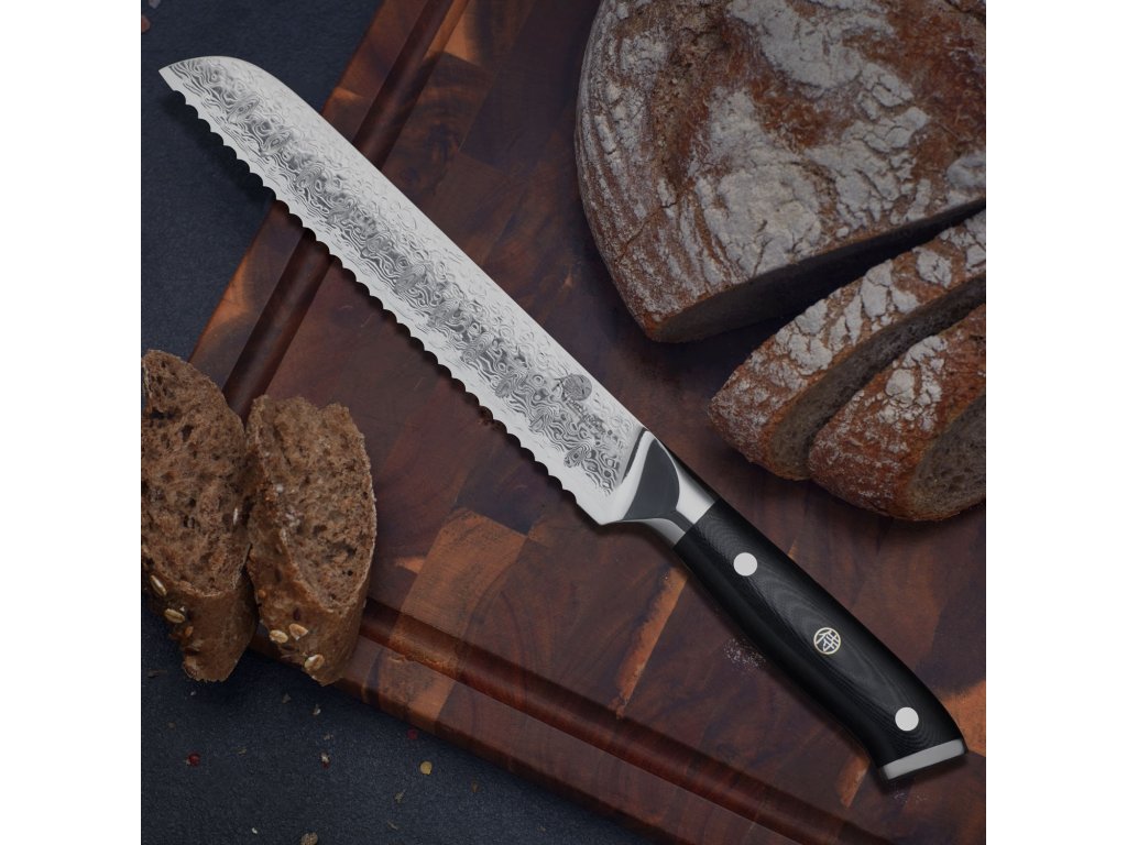 Japonský kuchařský nůž na pečivo od značky Dellinger Samurai je ideálním nástrojem pro krájení potravin s tvrdou kůrkou a měkkým středem, jako je čerstvý chléb, tvrdé rohlíky nebo ovoce. Díky vroubkovanému ostří dokáže bez námahy provádět řezy, aniž by docházelo k drobení nebo trhání potravin.
