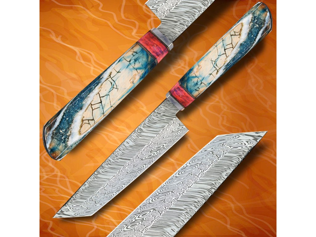 jedinečný nůž šéfkuchaře Nakiri/Tanto 145 mm Dellinger Rosette RWL34 Powder Mammut Collect Nr.1