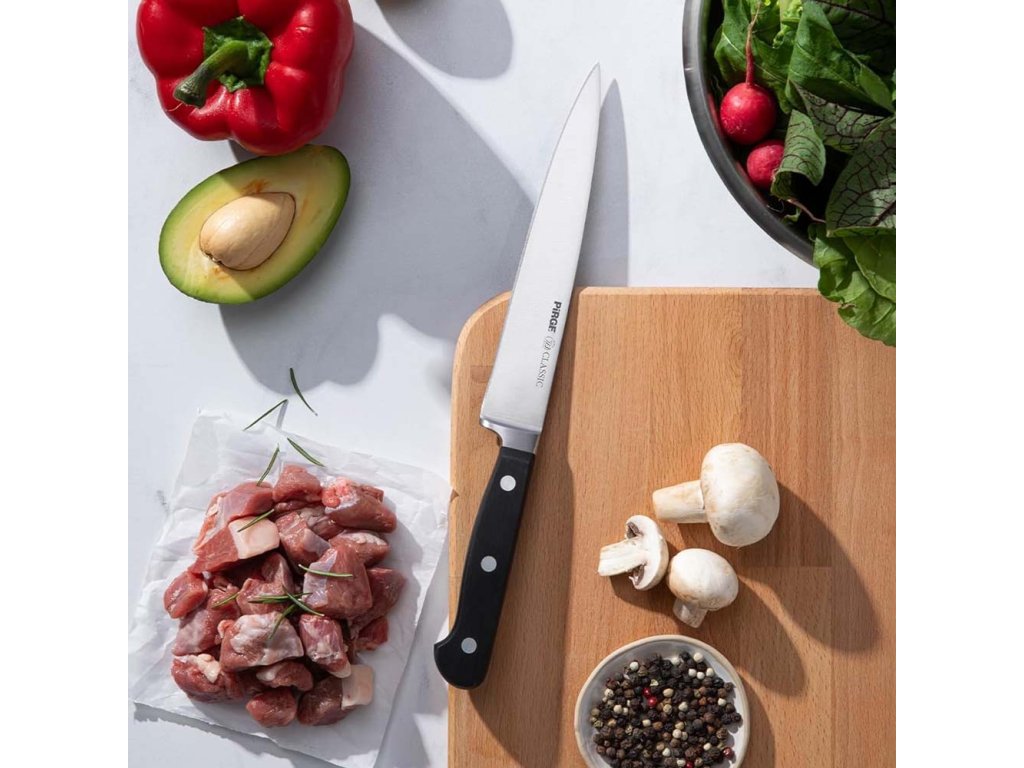 - ✅ Lehkost a ovladatelnost – Snadno prořízne i šťavnaté maso, drůbež nebo ryby bez ztráty šťávy.