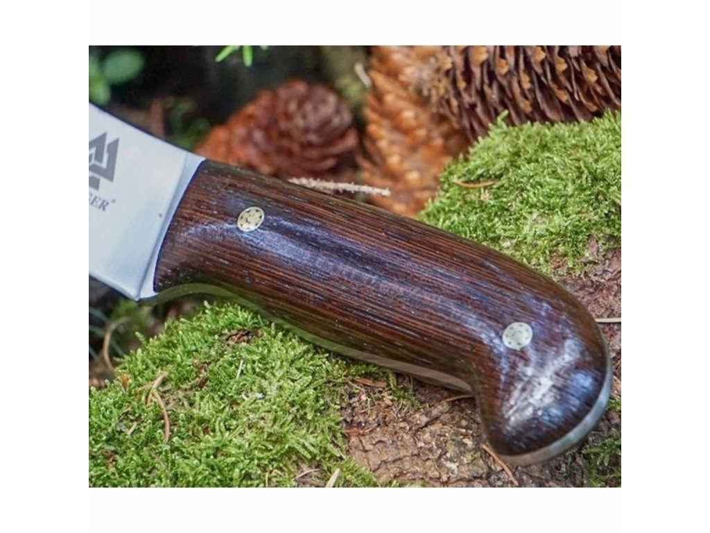 Tento nůž je především určen k porcování, řezání a stahování zvěře. Stal se klíčovým nástrojem pro život na horských pastvinách, ale také nezbytným pro jatka, řeznictví a restaurace. Řeznický nůž Dellinger NORRAD2 Butcher je ručně kovaný a zpracovaný z oceli D2. Po přesném a pečlivém vytvrzení, temperování a žíhání dosahuje tvrdosti Rockwell 60-62 (HRC). Jeho ostří jen tak někdo, nebo něco nepoškodí. Nádherná rukojeť tohoto nože je ručně tvarována z kusu afrického tvrdého dřeva Wenge, které je olejováno Tungovým olejem a voskováno včelím voskem. Rukojeť je ozdobena 2 okrasnými nýtami.