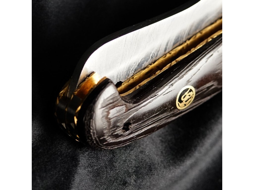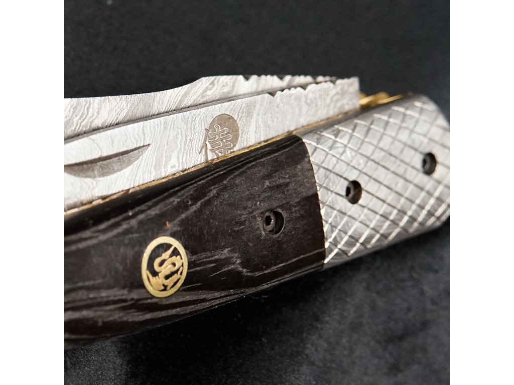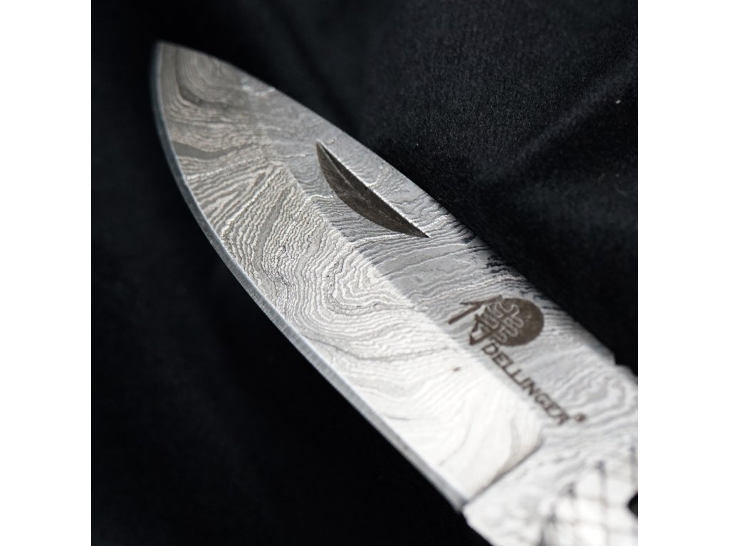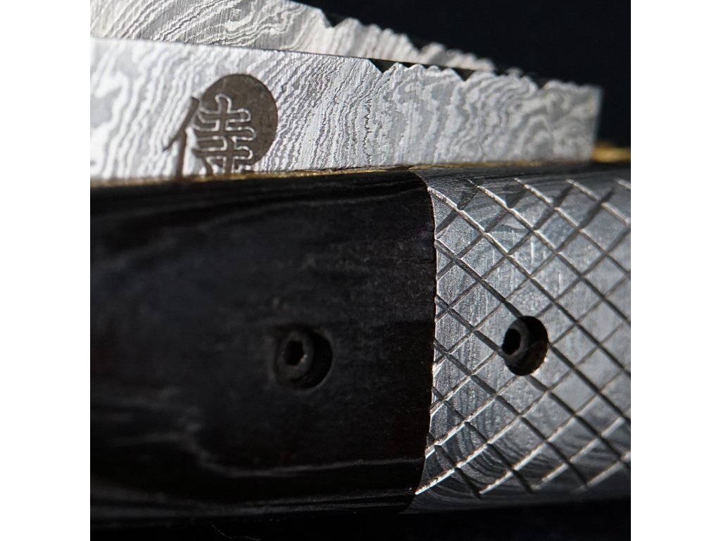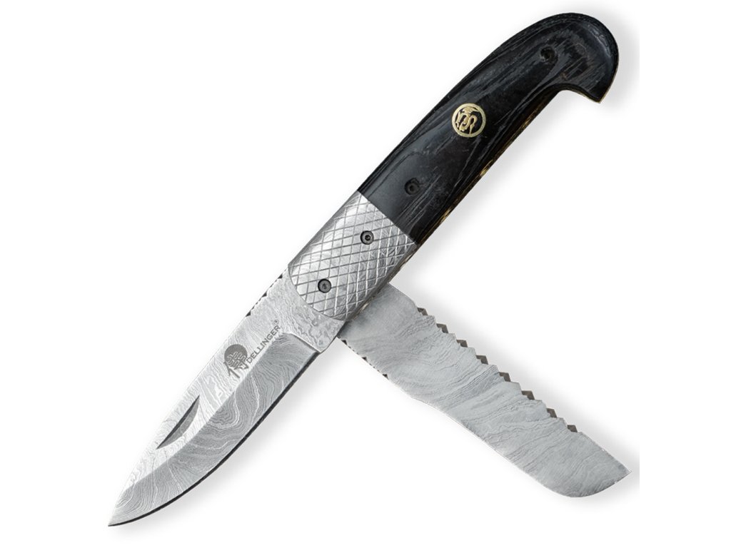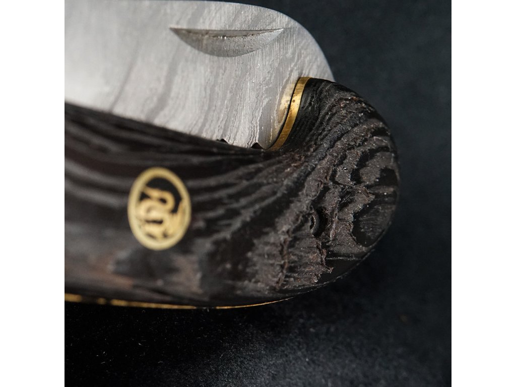 Exklusivní zavírací lovecký nůž Dellinger SAG se pyšní střenkou z kartáčovaného dřeva Wenge. Tento nůž je ručně kovaný z 352 překládaných vrstev ocelí 1095-15N20, což mu dodává extrémně ostré a trvanlivé ostří. Uhlíková ocel je mnohem snazší na ostření než nerezová, a postupem času nůž získá krásnou patinu, čímž se stane jedinečným uměleckým dílem.