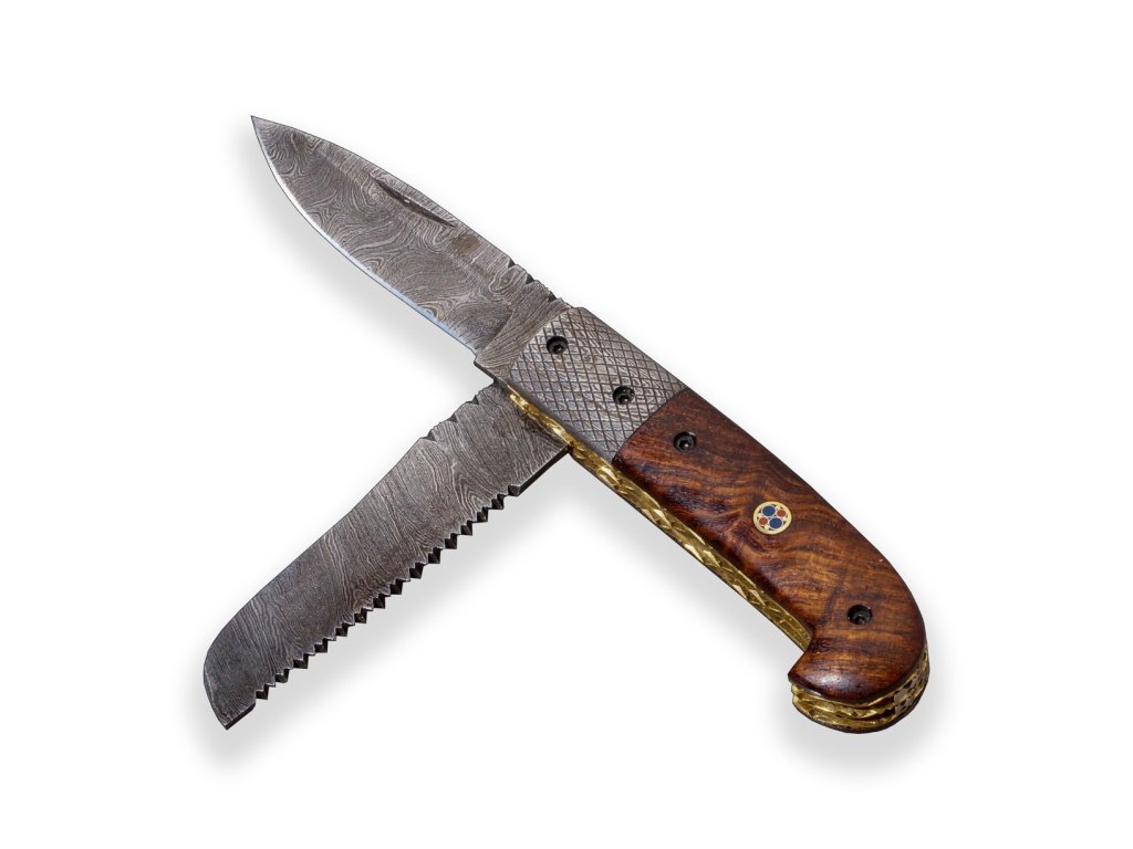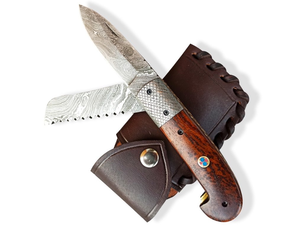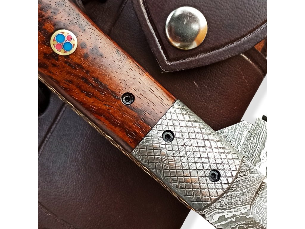 Tento exkluzivní zavírací lovecký nůž je vyroben s elegancí a důrazem na kvalitu. Střenka je zhotovena ze dřeva palisandru a nůž je ručně kovaný z 352 překládaných vrstev ocelí 1095-15N20. Díky vysokému obsahu uhlíku má nůž extrémně ostré a trvanlivé ostří. Uhlíkové oceli se snadno ostří a postupem času získají krásnou patinu, což z nože činí jedinečné umělecké dílo.