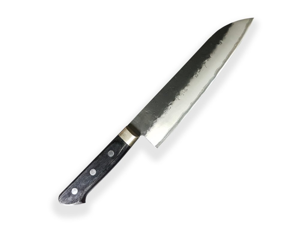 Tosa-Ichi Shadow nůž Santoku 7 “ má ultra ostré řezné jádro z japonské oceli Aogami Super (Hitachi Metals Ltd.) je jednou z nejlepších japonských uhlíkových ocelí. Kromě toho, že obsahuje více uhlíku, chromu a wolframu než modrá ocel č. 1, zahrnuje také molybden. Má velmi dobrou ostrost hran a vynikající retenci. Je schopna dosáhnout vysoké tvrdosti až 65 HRC, aniž by byla křehká. V důsledku toho mnozí nadšenci nožů hodnotí Aogami Super jako jednu z nejlepších vysoce uhlíkových ocelí na světě. Vnější povrch je z SUS-405 clad steel.