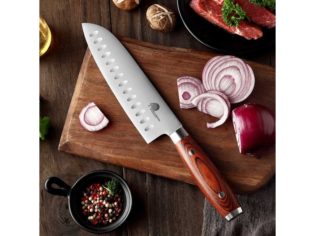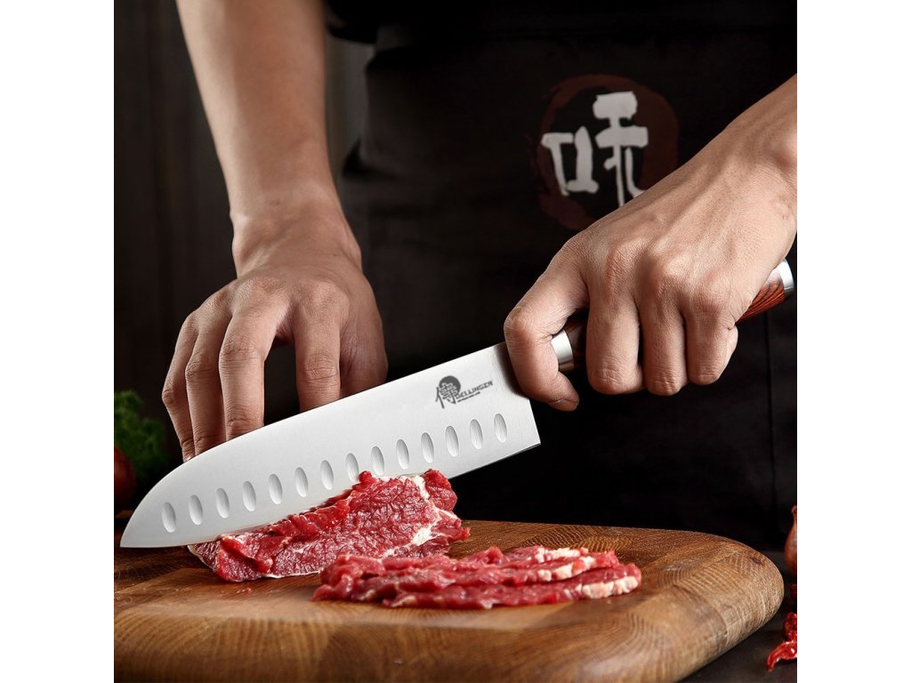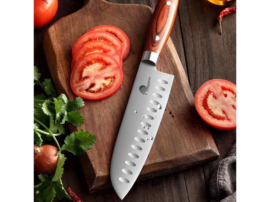 - Všestrannost: Santoku je skvělým společníkem pro práci s masem, rybami, zeleninou a ovocem díky své univerzální povaze.