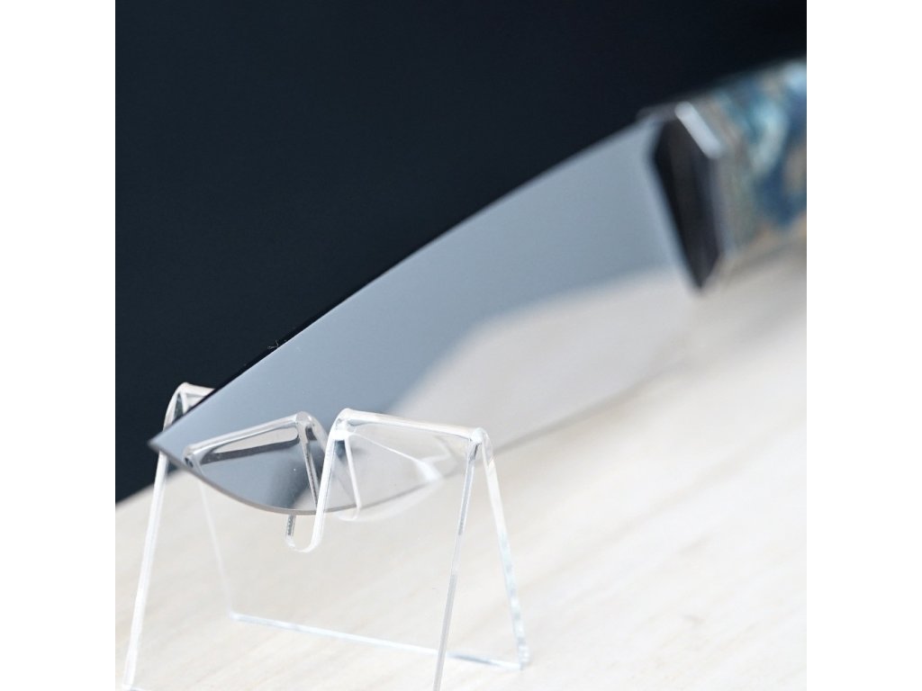 Exklusivní, přitom praktický a výkonný nůž šéfkuchaře, který má čepel z jedné z nejlepších ocelí "práškové M390". Tato vyjímečná ocel má dlouhotrvající ostrost při tvrdosti okolo R62 +/- 1 Rockwella. Leštěná prášková BOHLER M390 MICROCLEAN - ocel třetí generace v práškové metalurgii. Vyvinuta byla pro čepele nožů, které vyžadují vysokou odolnost proti korozi, velmi vysokou tvrdost a vynikající odolnost proti opotřebení. Použitý materiál zabezpečuje trvanlivost nože. Nůž Dellinger Mirror M390 Powder Steel se může stát rodinným pokladem, který přežije i vaše vnoučata. Nože jsou vyráběny tradičním způsobem, což zaručuje mimořádnou pevnost čepele a odolnost vůči otupení. Každý nůž je ručně broušený a při vysoké tvrdosti dosahuje mimořádné až extrémní ostrosti.