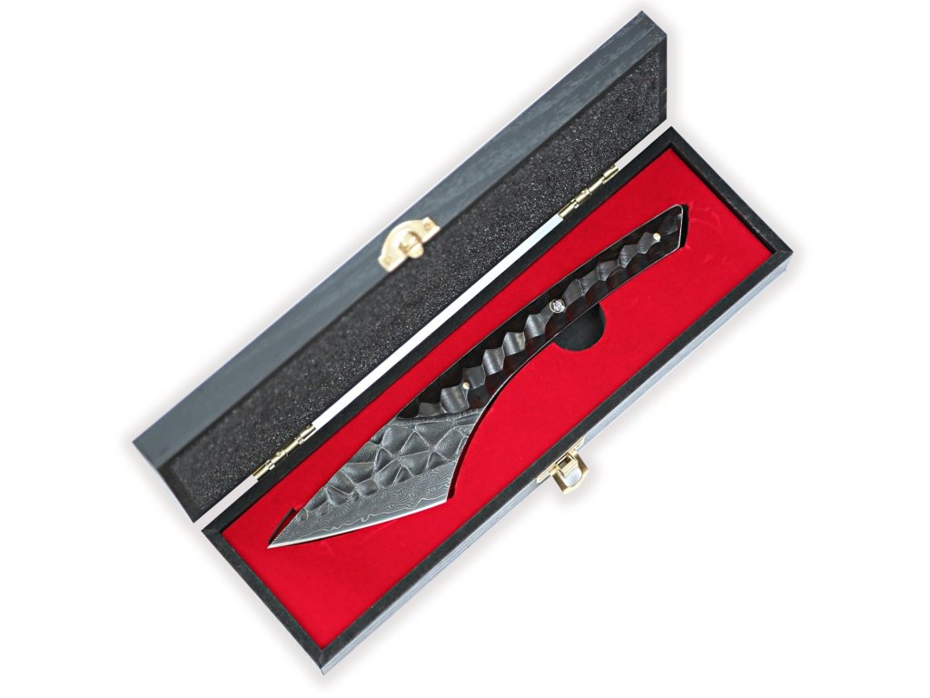 ✅ steakový nůž z oceli VG-10, nikdy neumývejte v myčce na nádobí. Pro zachování ostrosti nůž ručně omyjte a ihned osušte.