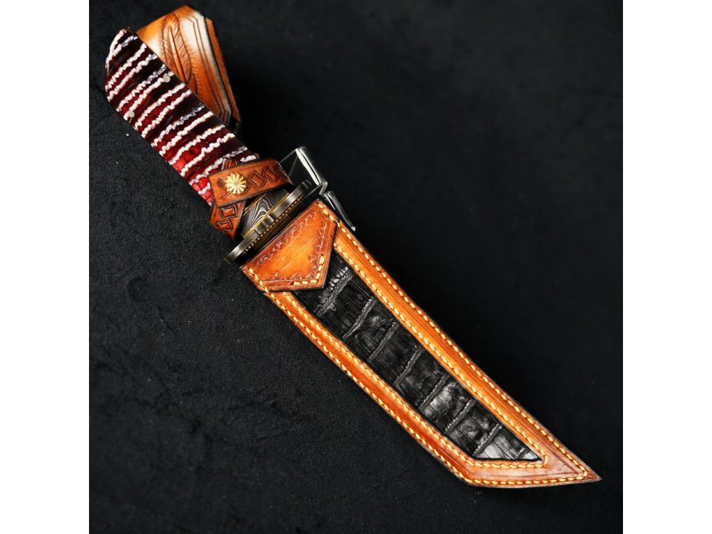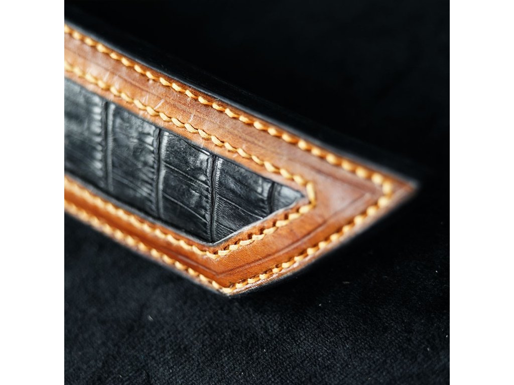 Pouzdro nože - vyrobeno z hovězí kůže dovezené s Argentiny v kombinaci s kůží rejnoka (Samegawa)