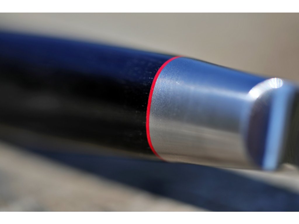 Čepel nože je oddělena od rukojeti z tvrdého dřeva tenkým červeným kroužkem, který umožňuje bezpečnou expanzi a kontrakci materiálů při extrémních podmínkách. Rukojeť je vyrobena z materiálu PAKAWOOD, což je imitace ebenového dřeva. Tento materiál je vysoce odolný vůči vodě, vlhkosti a neztrácí své vlastnosti v průběhu času. Na rozdíl od tradičního dřeva nevyžaduje PAKAWOOD žádnou údržbu.
