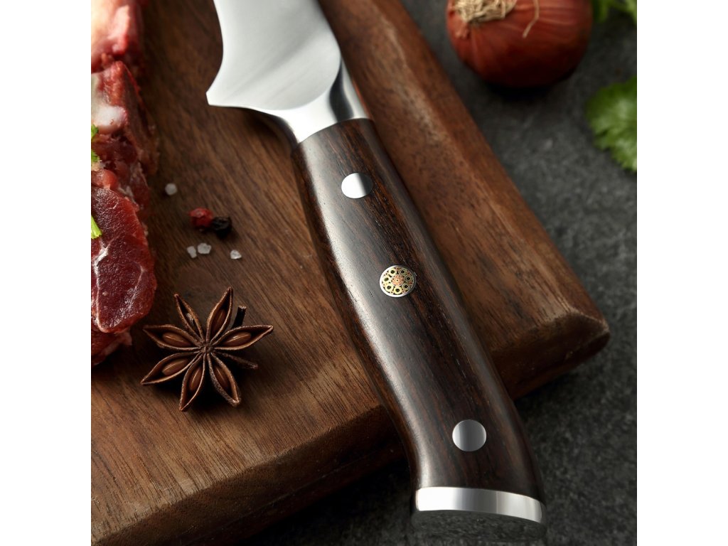 - Rukojeť: Rukojeť západního stylu z ebenového dřeva je pečlivě ručně leštěná a ergonomicky tvarovaná pro pohodlný úchop a vynikající ovládání.