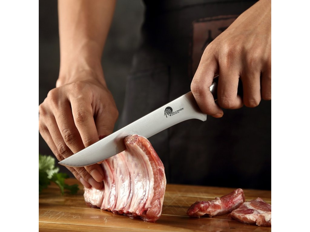 Japonský vykošťovací nůž Boning 6" z řady Dellinger German Samurai je vysoce kvalitní nástroj, který vám umožní odřezávat maso od kostí, šlach a tučných částí s precizností a lehkostí. S délkou čepele 160 mm a ergonomicky tvarovanou rukojetí je tento nůž navržen pro maximální komfort a kontrolu při práci v kuchyni.