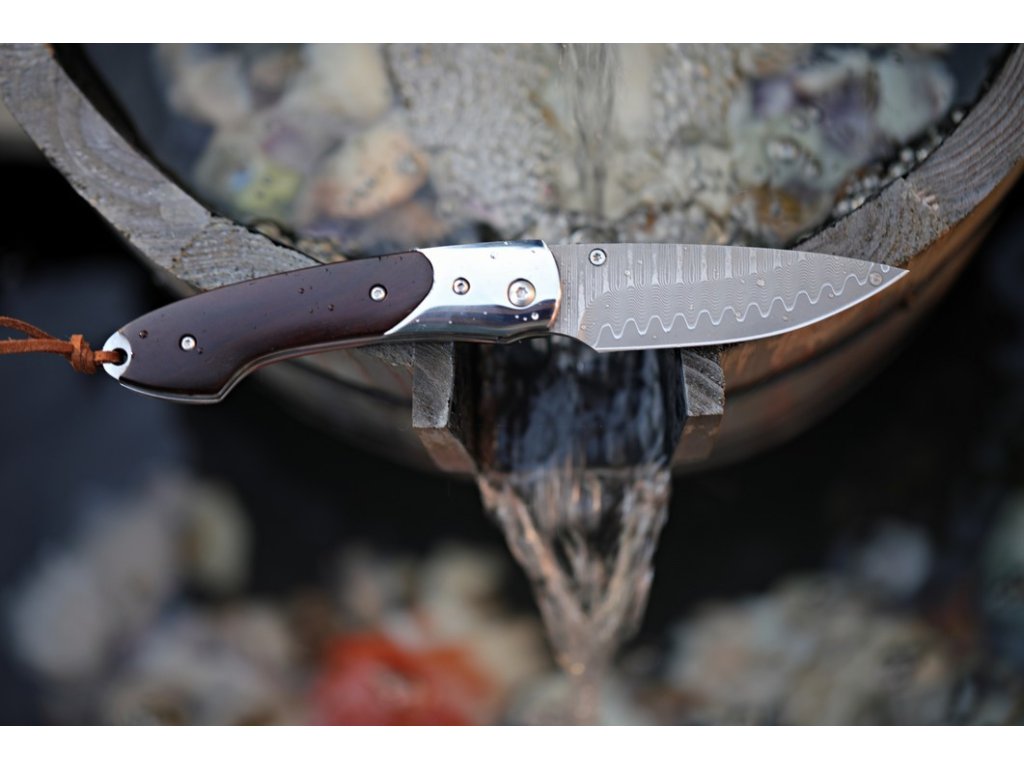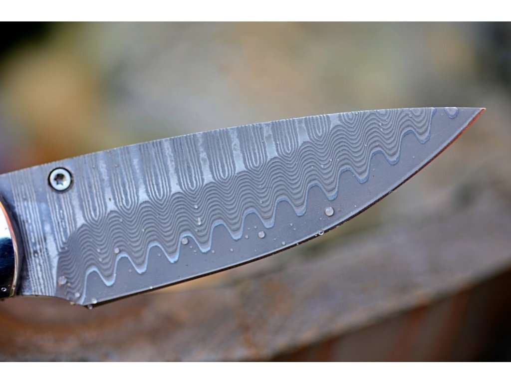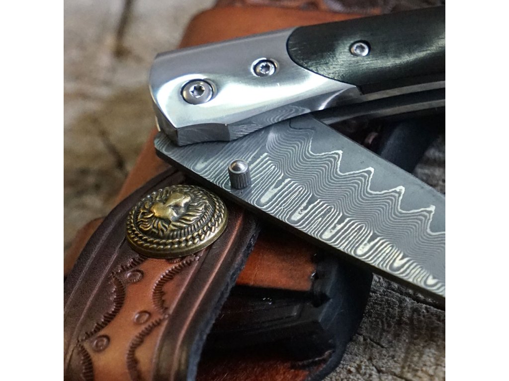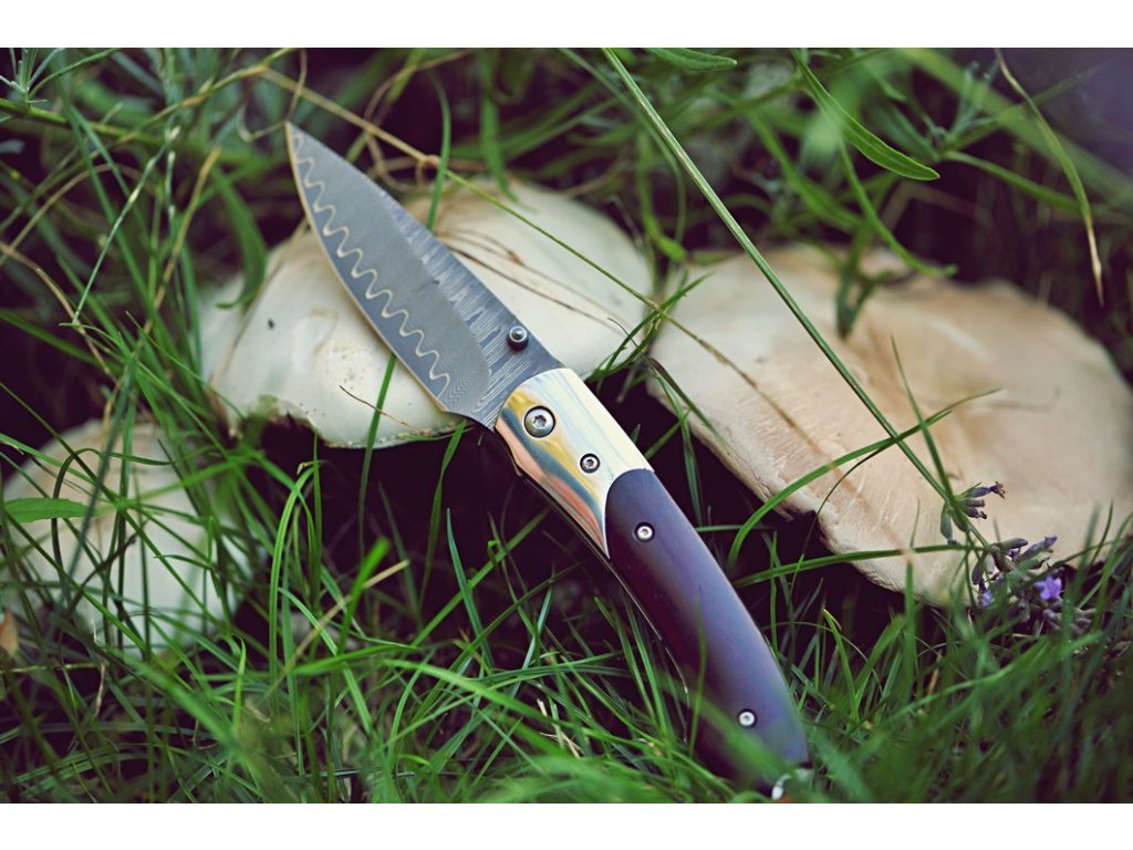 Zavírací lovecký nůž Mushroom Killer od Dellinger je navržen tak, aby poskytoval mimořádnou odolnost, houževnatost a ostrost díky své konstrukci z prémiových materiálů. Čepel nože je vyrobena z ultra ostrého japonského řezného jádra VG-10, chráněného 96 vrstvami nerezových damascénských ocelí SS316, což zaručuje jeho výjimečnou odolnost proti korozi. Vakuové tepelné zpracování čepele dosahuje tvrdosti okolo 61 HRC, což přispívá k jejímu mimořádnému ostří.