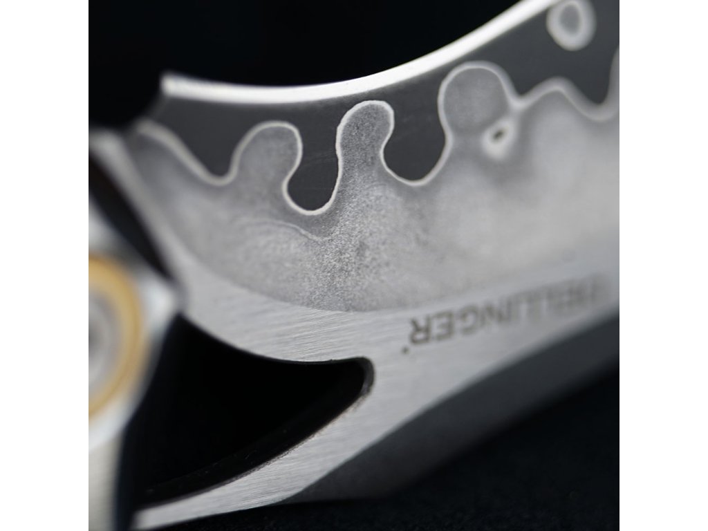 Hledáte nůž, který kombinuje špičkovou kvalitu, estetiku a praktické využití? Zavírací nůž Dellinger Spett SKD11 je přesně tím pravým. Čepel z japonské oceli SKD11 vyniká mimořádnou tvrdostí, odolností vůči opotřebení a schopností udržet dokonalou ostrost. Díky svému jedinečnému tvaru a dekorativnímu vlnkovitému vzoru nabízí nejen skvělý výkon při řezání, ale i vizuální potěšení.