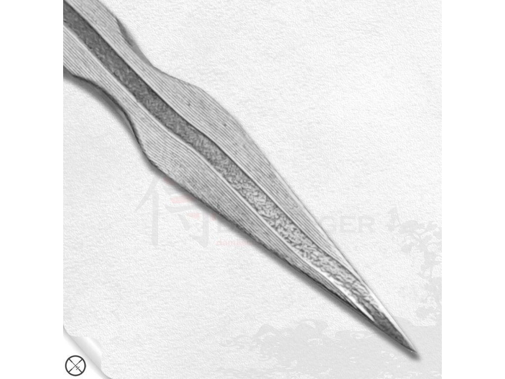 - Čepel: Díky plochému broušení a designu Tanto je čepel ideální pro bodání do tvrdých materiálů. Vysoce odolná a houževnatá díky kombinaci damaškové oceli a přesnému vakuovému kalení.