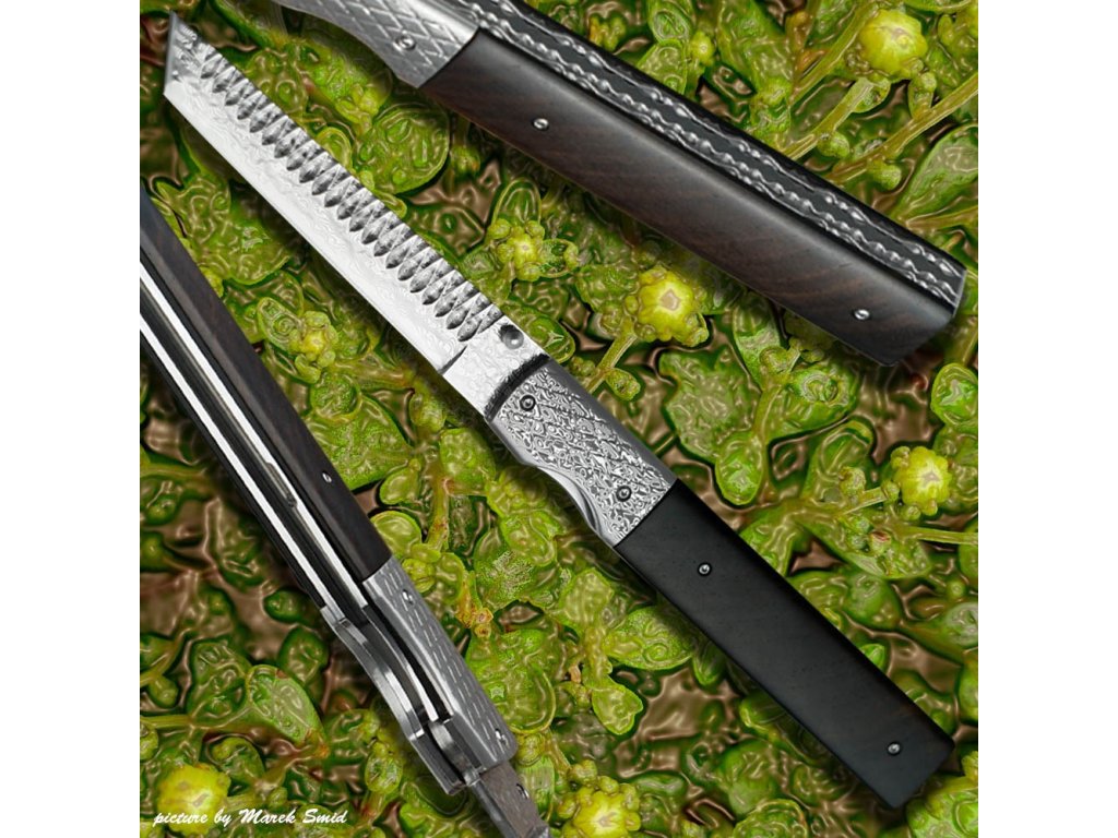 - Rukojeť: Vyrobená z ebenového dřeva, nabízí pevný a pohodlný úchop.