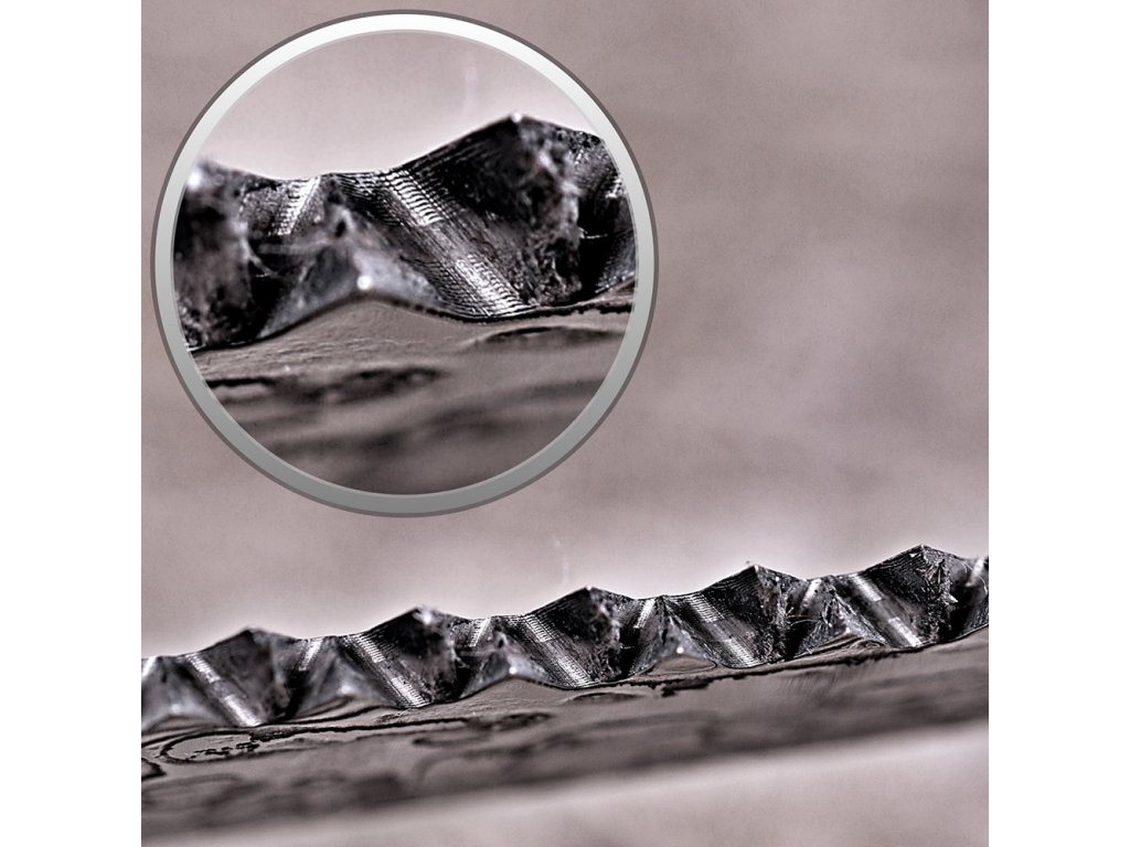 - Čepele: Ultra ostré řezné jádro z japonské oceli VG10, chráněné proti korozi. Jádro je vloženo mezi 66 vrstev nerezových damaškových ocelí, což zajišťuje dlouhotrvající ostrost při tvrdosti R61 +/- 1 Rockwella.