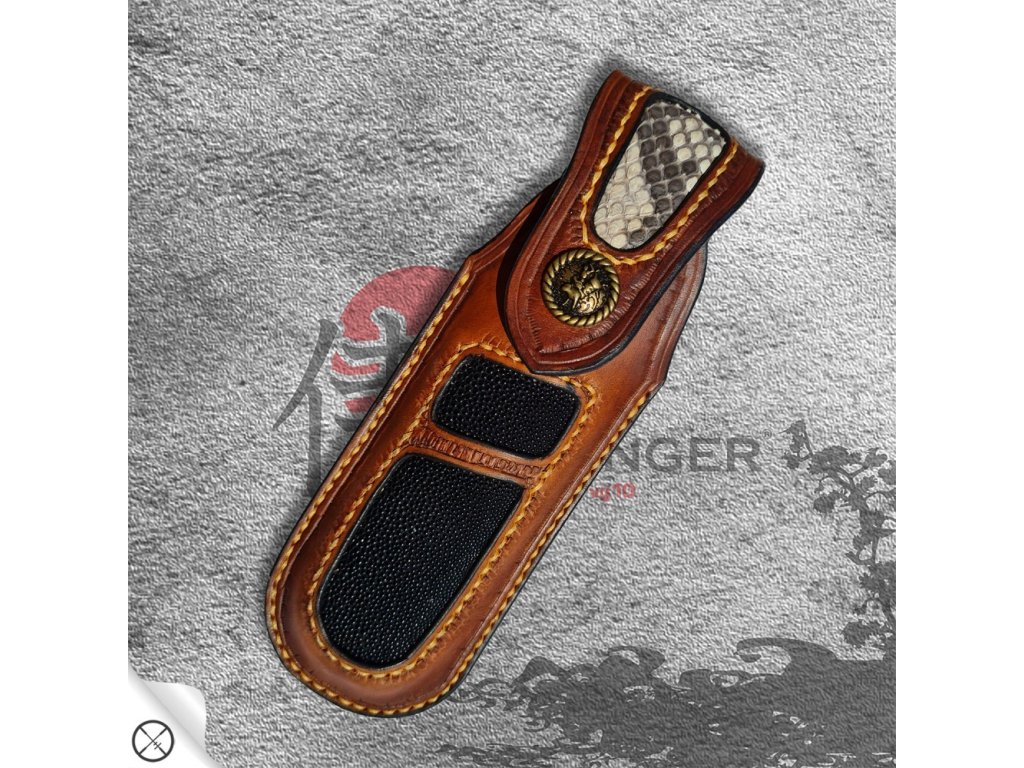 Kožené pouzdro pro lovecký zavírací nůž Dellinger TANTO Lenge Obsidian VG10