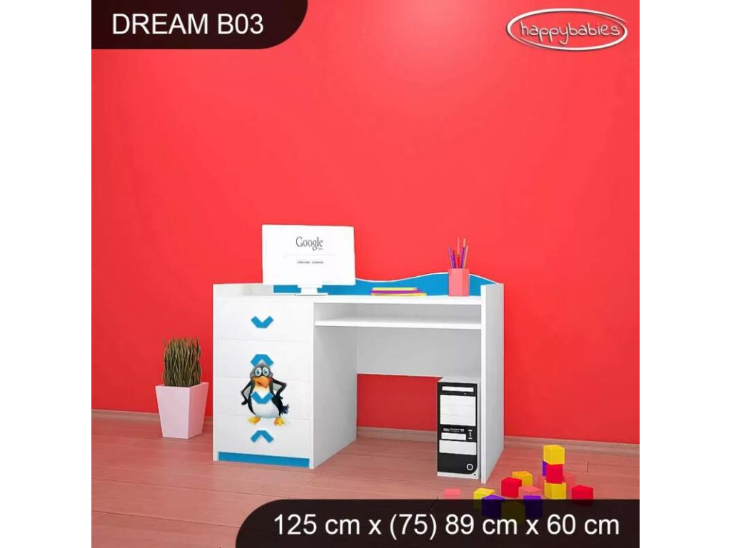 Psací stůl je důležitým vybavením dětského pokojíčku. Při jeho výběru je nutné zvážit jeho funkčnost i využití. Psací stůl bude každodenním společníkem Vašich dětí. Budou si u něj dělat úkoly, vyrábět, kreslit nebo číst. Tento nábytek je vyroben z 18 mm laminované dřevotřísky. V nabídce máme 89 motivů. Rozměr: 125 cm x ( 75 ) 89 cm x 60 cm K tomuto psacímu stolu si můžete ve stejném motivu vybrat také : postel, skříň, regál, noční stolek, box na hračky, komodu nebo poličku.Buďte první, kdo napíše příspěvek k této položce.
