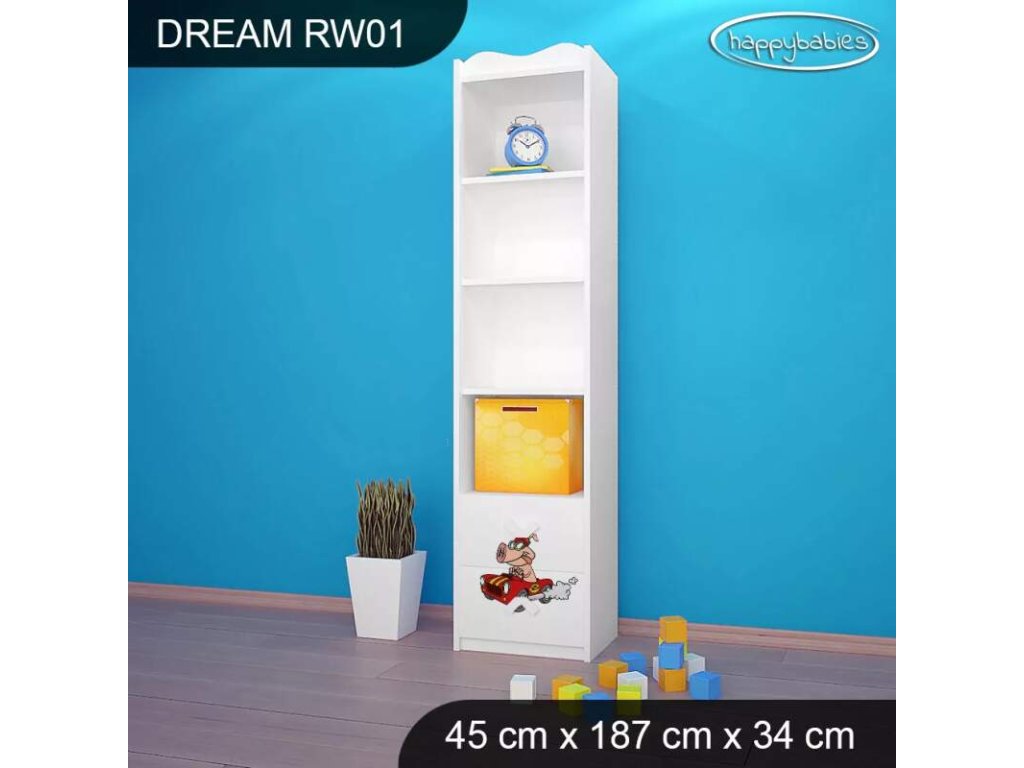 Dětský regál využijete v každém pokojíčku ať už na knížky, hračky, tak na oblečení nebo jiné potřeby. Regály nabízíme v různých barvách, motivech i velikostech. Můžete si zvolit, zda chcete otevřený regál, s šuplíky, bez šuplíků nebo jej zkombinovat. Naše nabídka je opravdu široká a vyběr je velký jak pro chlapce, tak pro dívky. Díky velkému množství úložného prostoru se děti naučí pořádku a pokojíček bude vypadat vesele a zároveň bude praktický. Materiál: lamino Barva: růžová, bílá, wenge, hruška, zelená,modrá Rozměry: 45 x 187 x 34 cm Ve stejném motivu si můžete zakoupit také dětskou postel, noční stolek, box na hračky, skříň, knihovnu nebo psací stůl.Buďte první, kdo napíše příspěvek k této položce.