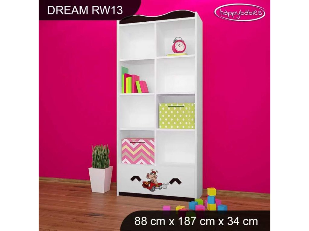 Dětský regál využijete v každém pokojíčku ať už na knížky, hračky, tak na oblečení nebo jiné potřeby. Regály nabízíme v různých barvách, motivech i velikostech. Můžete si zvolit, zda chcete otevřený regál, s šuplíky, bez šuplíků nebo jej zkombinovat. Naše nabídka je opravdu široká a vyběr je velký jak pro chlapce, tak pro dívky. Díky velkému množství úložného prostoru se děti naučí pořádku a pokojíček bude vypadat vesele a zároveň bude praktický. Materiál: lamino Barva: růžová, bílá, wenge, hruška, zelená, modrá Rozměry: 88 x 187 x 34 cm Ve stejném motivu si můžete zakoupit také dětskou postel, noční stolek, box na hračky, skříň, knihovnu nebo psací stůl.Buďte první, kdo napíše příspěvek k této položce.
