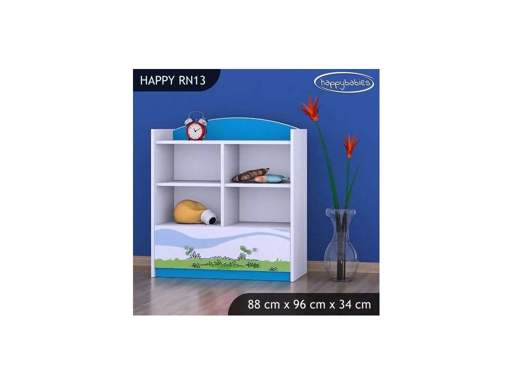 Dětský regál využijete v každém pokojíčku ať už na knížky, hračky, tak na oblečení nebo jiné potřeby. Regály nabízíme v různých barvách, motivech i velikostech. Můžete si zvolit, zda chcete otevřený regál, s šuplíky, bez šuplíků nebo jej zkombinovat. Naše nabídka je opravdu široká a výběr je velký jak pro chlapce, tak pro dívky. Díky velkému množství úložného prostoru se děti naučí pořádku a pokojíček bude vypadat vesele a zároveň bude praktický. Materiál: lamino Rozměry: 88 x 96 x 34 cm Ve stejném motivu si můžete zakoupit také dětskou postel, noční stolek, box na hračky, skříň, knihovnu nebo psací stůl.Buďte první, kdo napíše příspěvek k této položce.