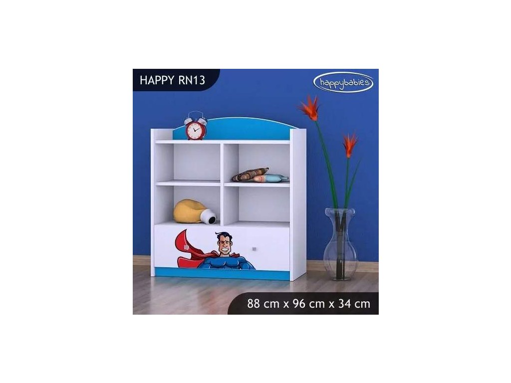 Dětský regál využijete v každém pokojíčku ať už na knížky, hračky, tak na oblečení nebo jiné potřeby. Regály nabízíme v různých barvách, motivech i velikostech. Můžete si zvolit, zda chcete otevřený regál, s šuplíky, bez šuplíků nebo jej zkombinovat. Naše nabídka je opravdu široká a výběr je velký jak pro chlapce, tak pro dívky. Díky velkému množství úložného prostoru se děti naučí pořádku a pokojíček bude vypadat vesele a zároveň bude praktický. Materiál: lamino Rozměry: 88 x 96 x 34 cm Ve stejném motivu si můžete zakoupit také dětskou postel, noční stolek, box na hračky, skříň, knihovnu nebo psací stůl.Buďte první, kdo napíše příspěvek k této položce.