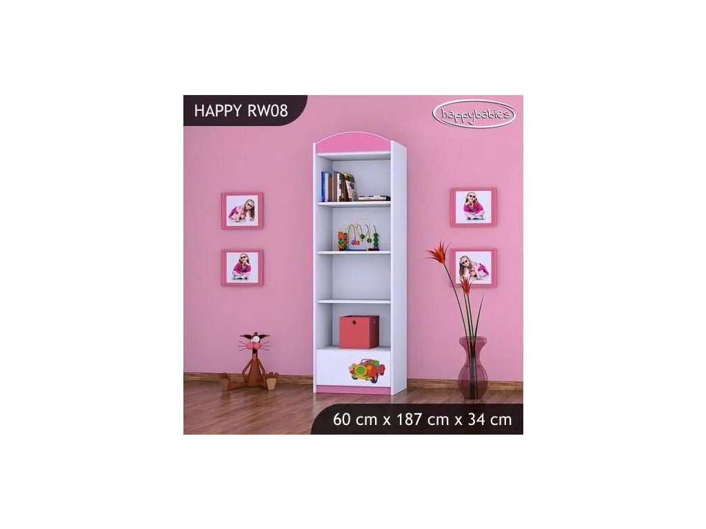 Dětský regál využijete v každém pokojíčku ať už na knížky, hračky, tak na oblečení nebo jiné potřeby. Regály nabízíme v různých barvách, motivech i velikostech. Můžete si zvolit, zda chcete otevřený regál, s šuplíky, bez šuplíků nebo jej zkombinovat. Naše nabídka je opravdu široká a vyběr je velký jak pro chlapce, tak pro dívky. Díky velkému množství úložného prostoru se děti naučí pořádku a pokojíček bude vypadat vesele a zároveň bude praktický. Materiál: lamino Barva: růžová, bílá, wenge, hruška, kalvados, zelená, oranžová, modrá, buk Rozměry: 60 x 187 x 34 cm Ve stejném motivu si můžete zakoupit také dětskou postel, noční stolek, box na hračky, skříň, knihovnu nebo psací stůl.Buďte první, kdo napíše příspěvek k této položce.