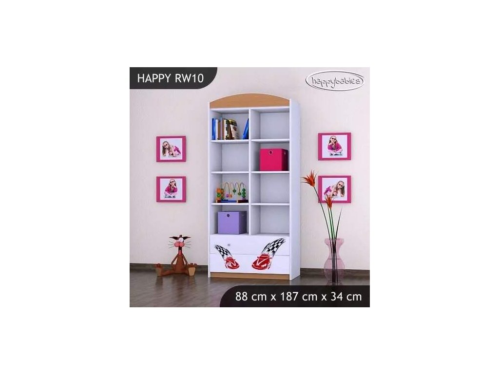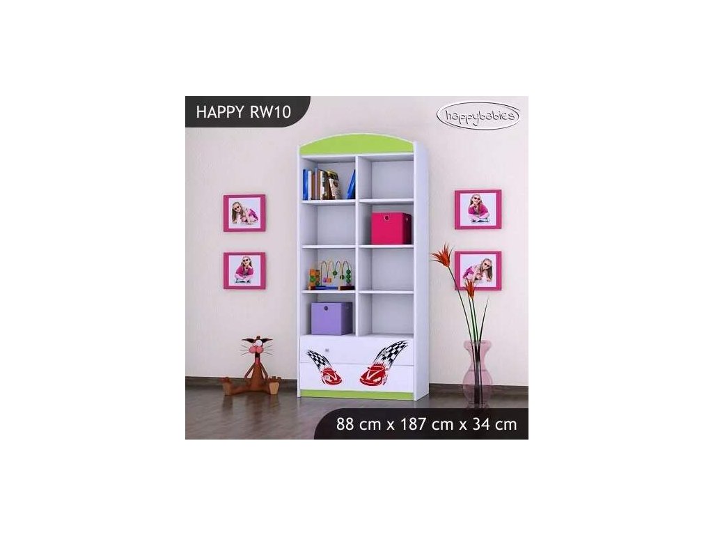 Dětský regál využijete v každém pokojíčku ať už na knížky, hračky, tak na oblečení nebo jiné potřeby. Regály nabízíme v různých barvách, motivech i velikostech. Můžete si zvolit, zda chcete otevřený regál, s šuplíky, bez šuplíků nebo jej zkombinovat. Naše nabídka je opravdu široká a vyběr je velký jak pro chlapce, tak pro dívky. Díky velkému množství úložného prostoru se děti naučí pořádku a pokojíček bude vypadat vesele a zároveň bude praktický. Materiál: lamino Barva: růžová, bílá, wenge, hruška, kalvados, zelená, oranžová, modrá, buk Rozměry: 88 x 187 x 34 cm Ve stejném motivu si můžete zakoupit také dětskou postel, noční stolek, box na hračky, skříň, knihovnu nebo psací stůl.Buďte první, kdo napíše příspěvek k této položce.