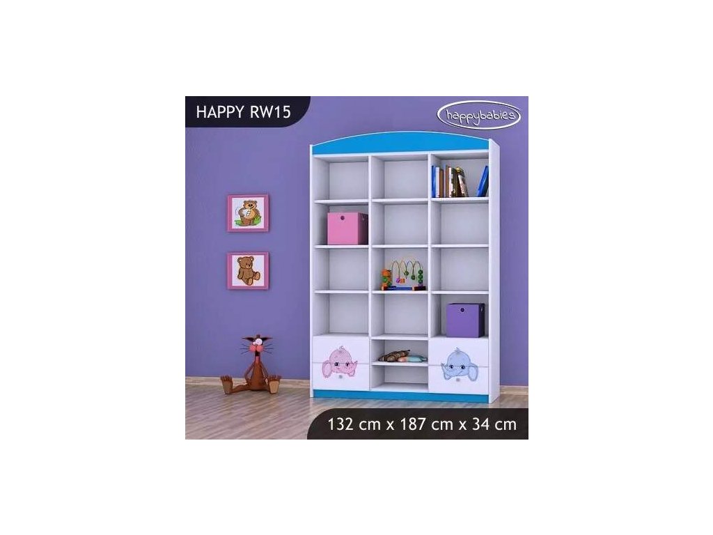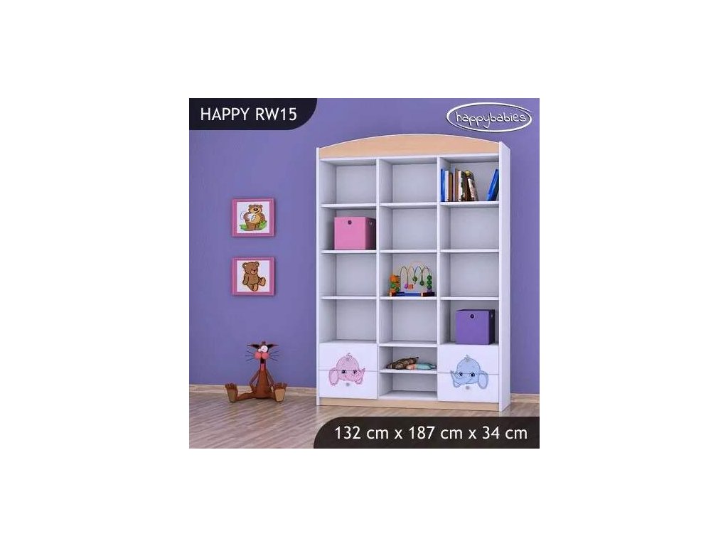 Regál Happy RW15 -růžový a modrý slon