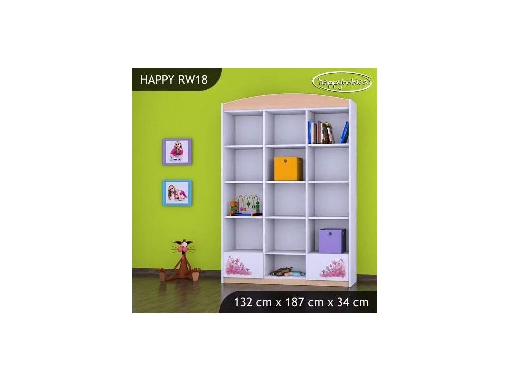 Dětský regál využijete v každém pokojíčku ať už na knížky, hračky, tak na oblečení nebo jiné potřeby. Regály nabízíme v různých barvách, motivech i velikostech. Můžete si zvolit, zda chcete otevřený regál, s šuplíky, bez šuplíků nebo jej zkombinovat. Naše nabídka je opravdu široká a vyběr je velký jak pro chlapce, tak pro dívky. Díky velkému množství úložného prostoru se děti naučí pořádku a pokojíček bude vypadat vesele a zároveň bude praktický. Materiál: lamino Barva: růžová, bílá, wenge, hruška, kalvados, zelená, oranžová, modrá, buk Rozměry: 132 x 187 x 34 cm Ve stejném motivu si můžete zakoupit také dětskou postel, noční stolek, box na hračky, skříň, knihovnu nebo psací stůl.Buďte první, kdo napíše příspěvek k této položce.
