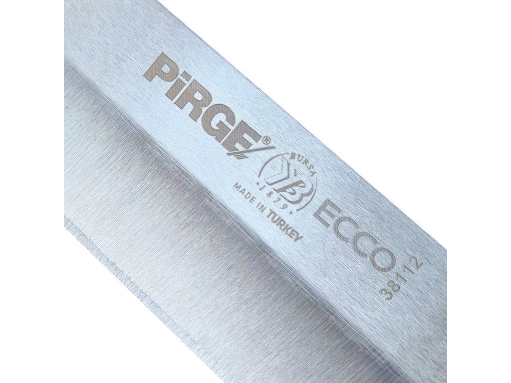 Nože ze série Pirge ECCO z německé nerezové oceli 1.4116 jsou určeny jak pro profesionální provozy, tak i k běžnému domácí použití. Tvrdost ostří dosahuje 56-58 HRC a je broušeno pod úhlem 20 stupňů. Síla ostří se pohybuje v závislosti na typu nože a velikosti v rozmezí 1,8 - 2,5 mm. Tvary nožů byly navrženy profesionály s mnohaletými zkušenostmi. Krájení, plátkování, čištění masa, ovoce a zeleniny – nic nebude pro tyto nože problém. Nože Pirge ECCO jsou první volbou pro začínající kuchaře a studenty gastronomie. Záruka na tyto nože je 5 let a vztahuje se na jiná, než mechanická poškození a výrobní vady.