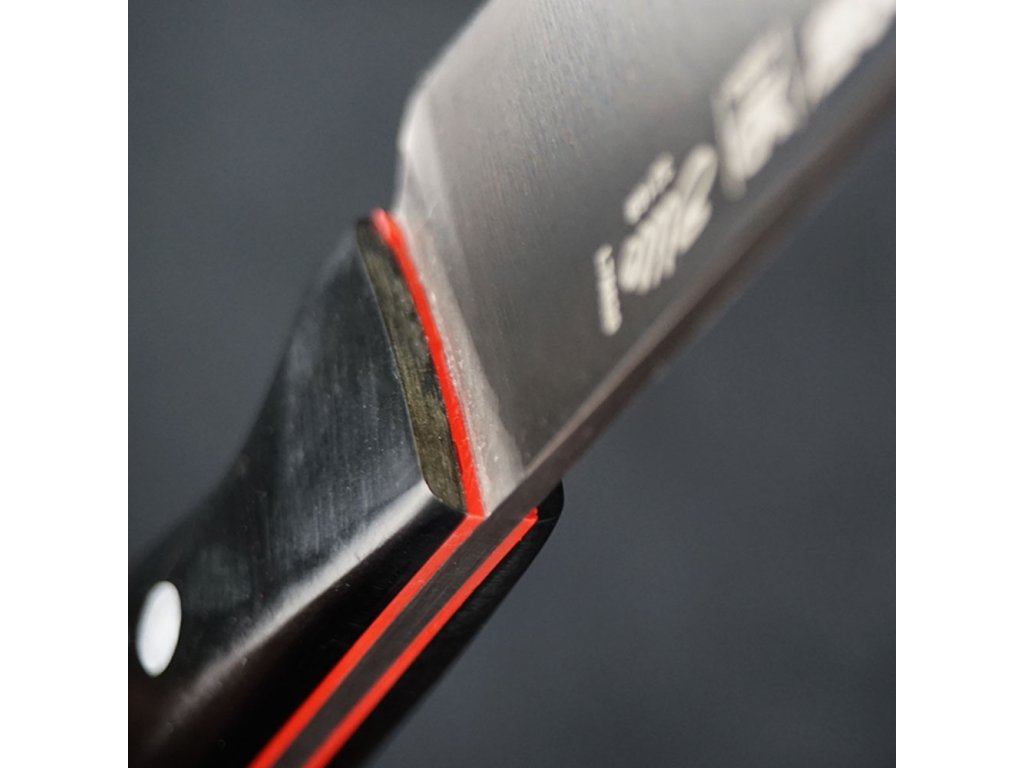 Rukojeť je vyrobena z odolného černého kompozitu s červenými příložkami. Materiál odolává nárazům, vlhkosti i tukům a poskytuje pevný, hygienický úchop i při delší práci.