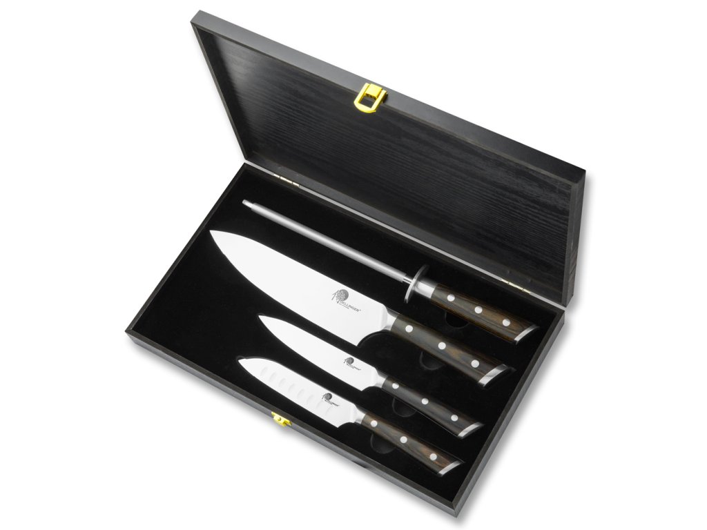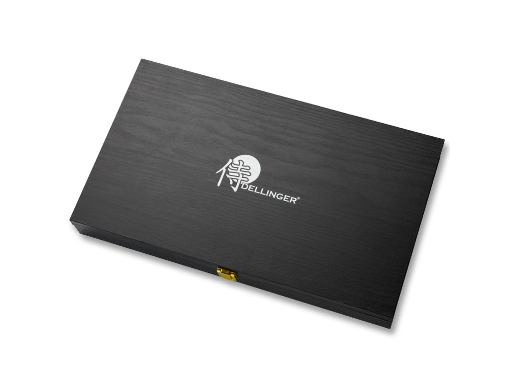 sada 3 nožů + diamantová ocílka v dřevěné dárkové krabici, Dellinger German Black Samurai