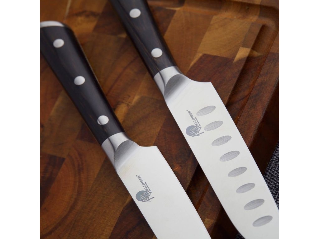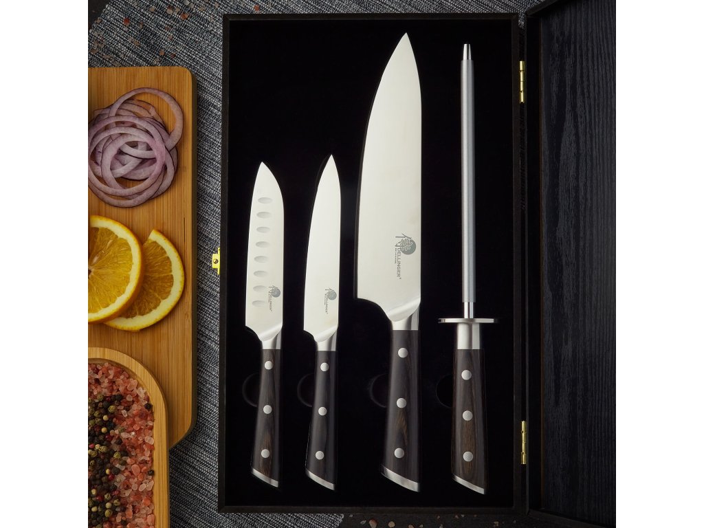 Nože série Dellinger German Black Samurai jsou vyrobeny z vysoce kvalitní německé oceli 1.4116 s tvrdostí HRC 56-58, která zajišťuje vynikající ostrost a dlouhou životnost. Každý nůž je ručně broušený, což zaručuje precizní ostří, které si poradí s jakýmkoliv typem surovin – od masa přes zeleninu až po ovoce a ryby. Díky této sadě zvládnete připravit dokonalý pokrm od začátku do konce.