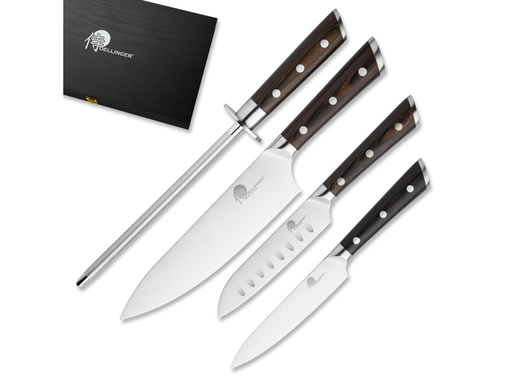 Sada 3 nožů + diamantová ocílka Dellinger German Black Samurai – Dokonalý nástroj pro každou kuchyň