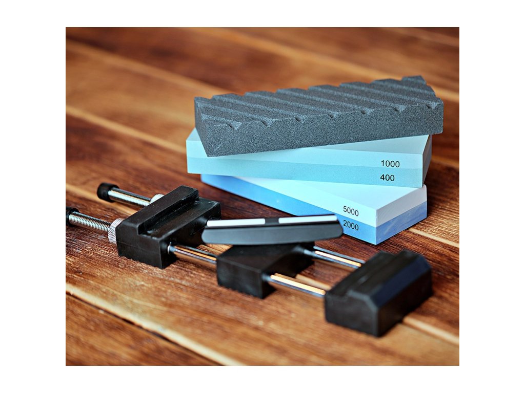 sada brusných kamenů ZAČÁTEČNÍK včetně plastového vodítka, srovnávače a držáku