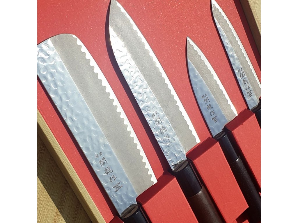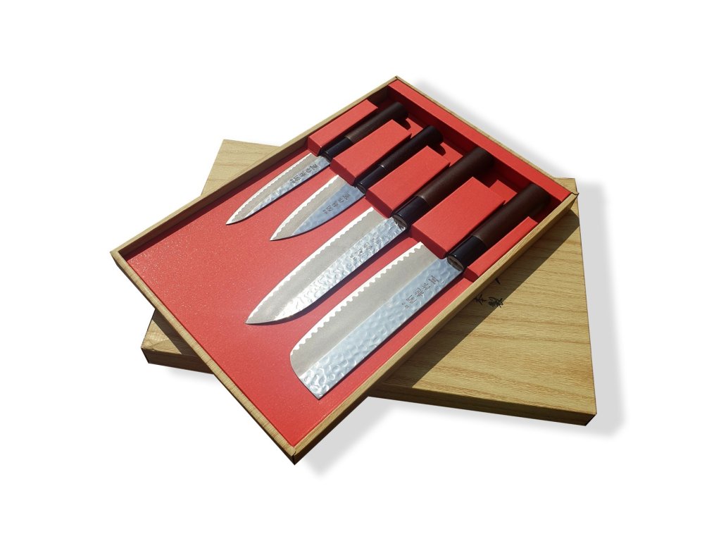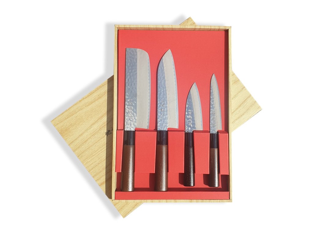 sada nožů II tsuchime - box 4 ks Sekyriu Japan, hnědá rukojeť