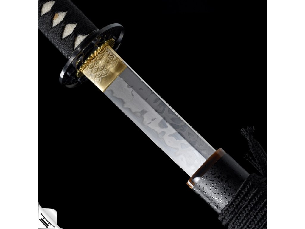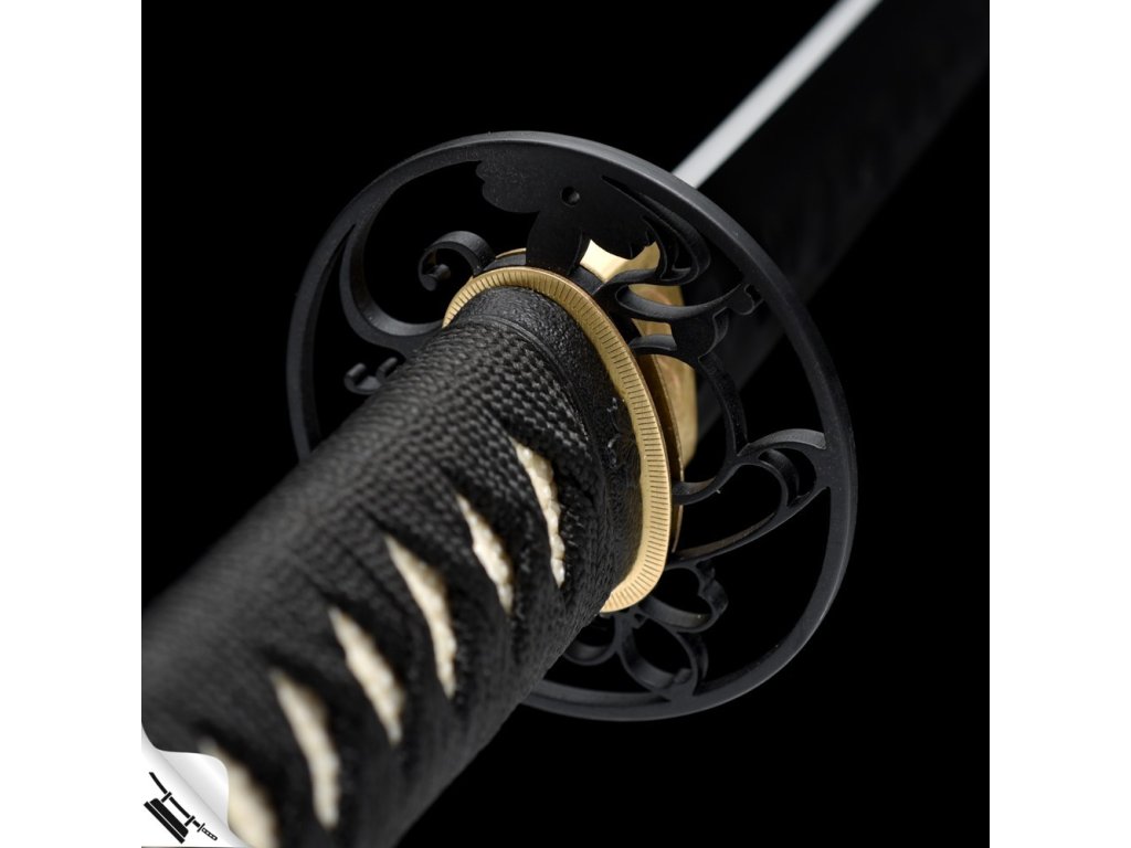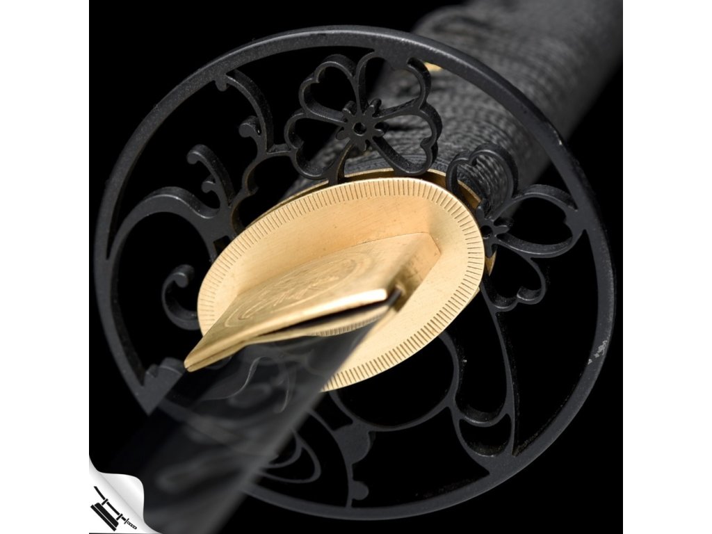 ✅ Tsuka: (rukojeť) dřevěné jádro, potažena pravou rejnočí kůží (Samegawa), s černou hedvábnou omotávkou ITO. Čepel zajištěna 2 kolíky "mekugi", Menuki (ornament) z každé strany Tsuky