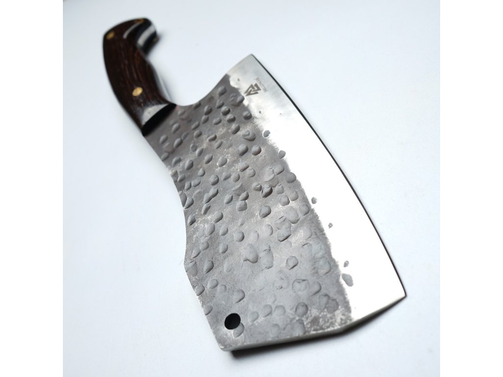 Nádherná rukojeť tohoto sekáčku je ručně tvarována z kusu afrického tvrdého dřeva Wenge, které je olejováno Tungovým olejem a voskováno včelím voskem. Rukojeť je ozdobena 2 okrasnými nýtami.