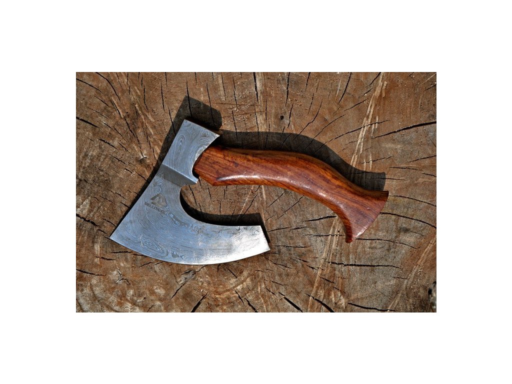 Objevte sekera Dellinger Handy Damascus, vysoce kvalitní "vousatou" sekeru z damascénské oceli, která spojuje historické dědictví a moderní umění kování. Tento typ sekery, známý již od 6. století našeho letopočtu, byl osvědčen v boji a je často spojován s legendárními Vikingy a skandinávskými válečníky. Její jedinečný design s "háčkem" byl navržen pro efektivní boj, umožňující strhávání zbraní a štítů.