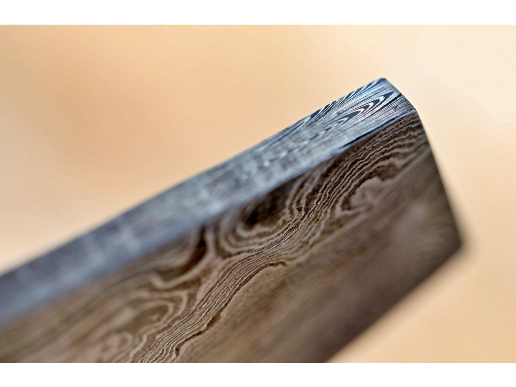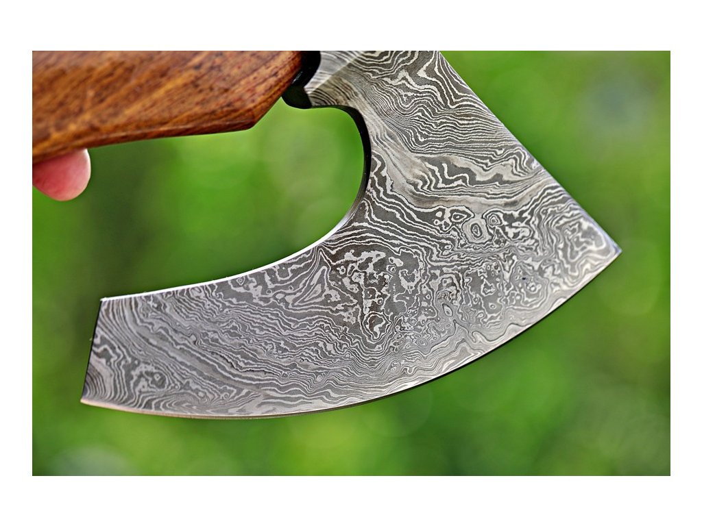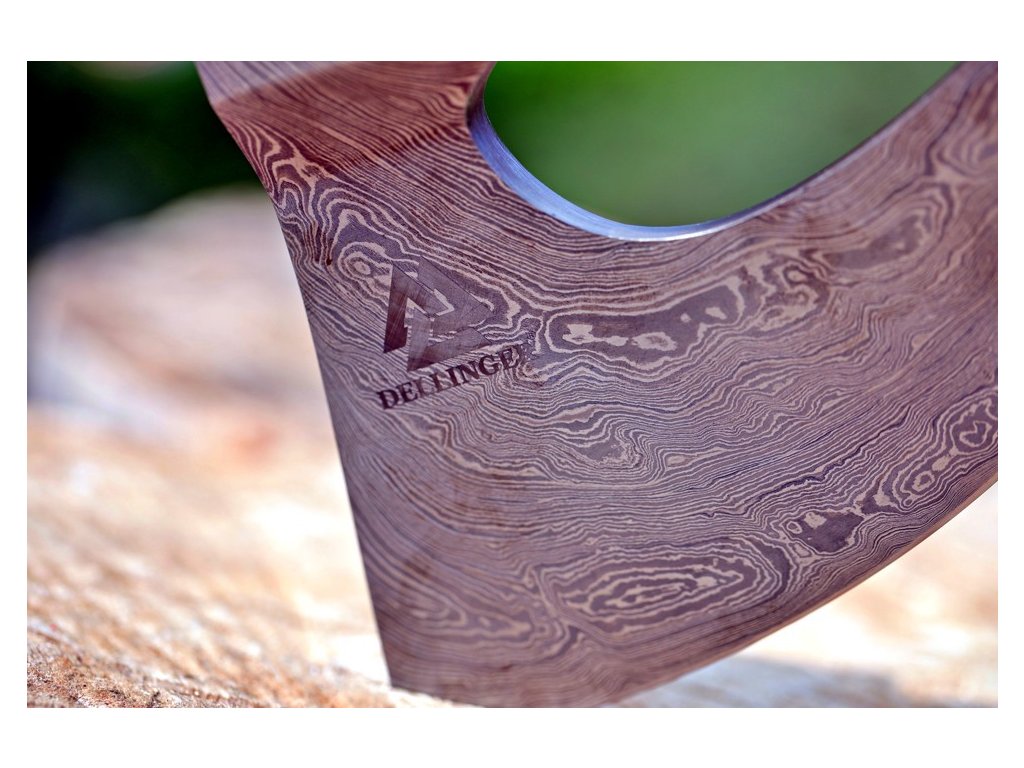 Sekera Dellinger Handy Damascus je vyrobena z 352 vrstev damascénské oceli 1095-15N20, což jí poskytuje nejen unikátní a nenapodobitelný vzhled, ale také vynikající výkon. S tvrdostí v rozmezí 55-60 HRC podle Rockwellovy stupnice je ideální pro různé náročné úkoly. Břitová stopa je protažena do zadní části, což poskytuje delší řeznou plochu a umožňuje lepší kontrolu při použití.