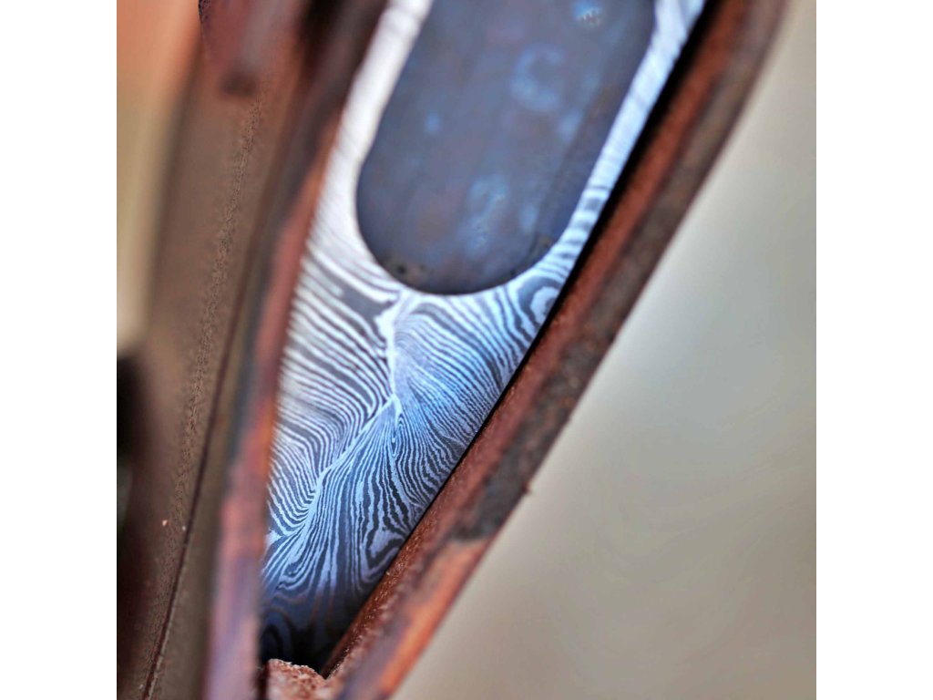 - Materiál: 352 vrstvy damascénské oceli (1095-15N20), což zajišťuje nejen vysokou pevnost a odolnost, ale také jedinečný vzhled, který je charakteristický pro damascénskou ocel.