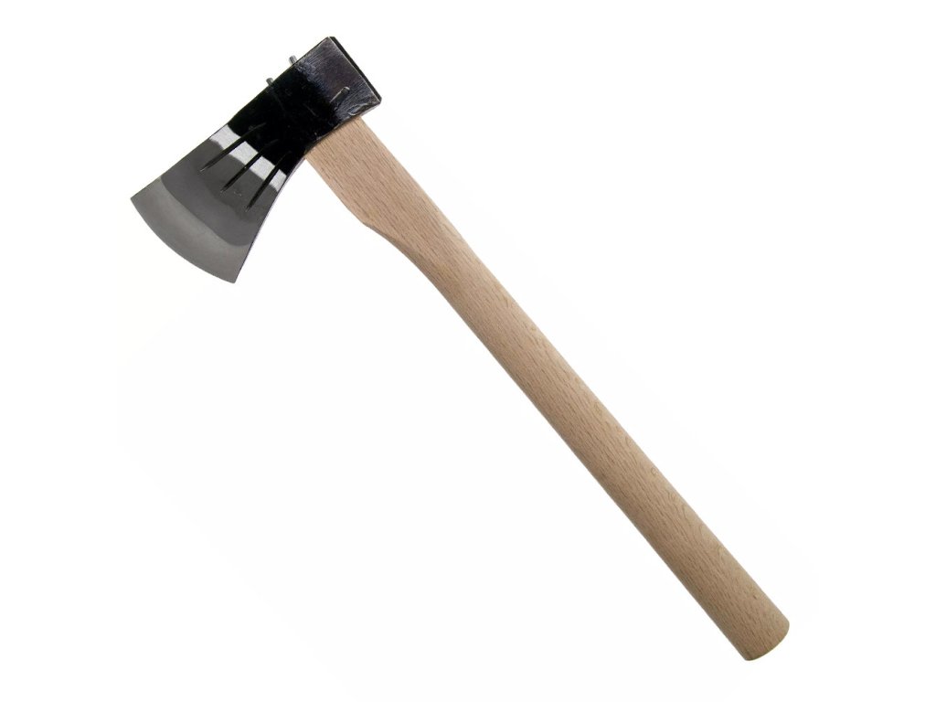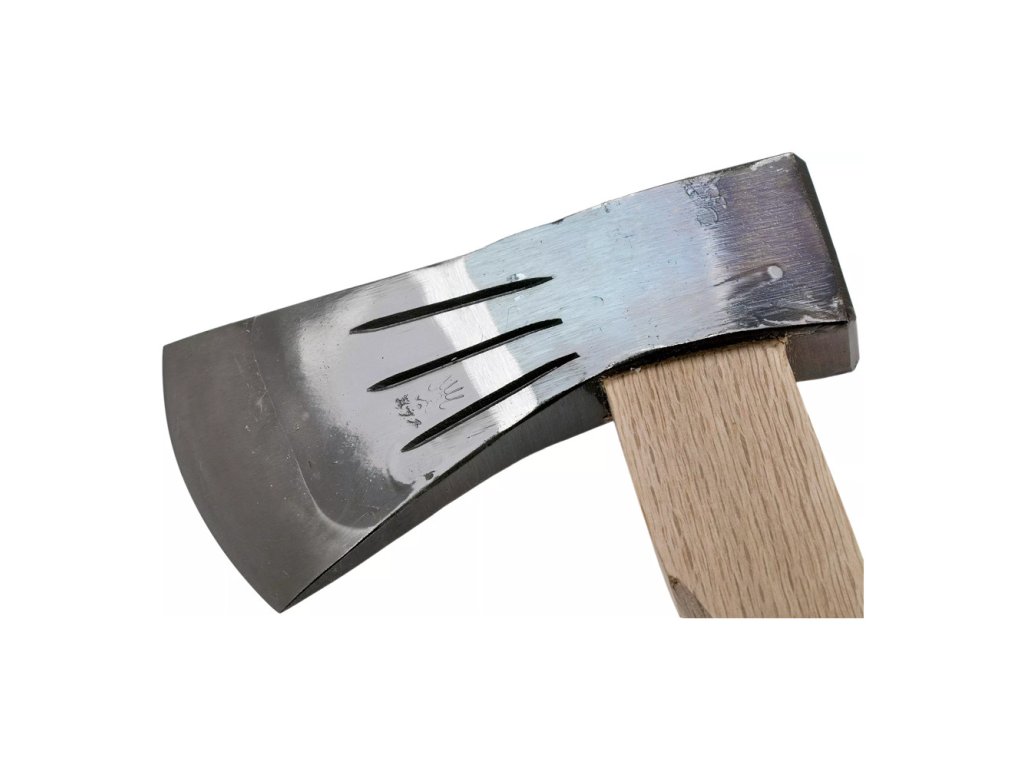 - Rukojeť: Rukojeť je rovná a vyrobena z japonského bílého dubu. Není finálně ošetřena, což znamená, že doporučujeme natřít ji lakem nebo mořidlem pro zachování dobrého stavu sekery.